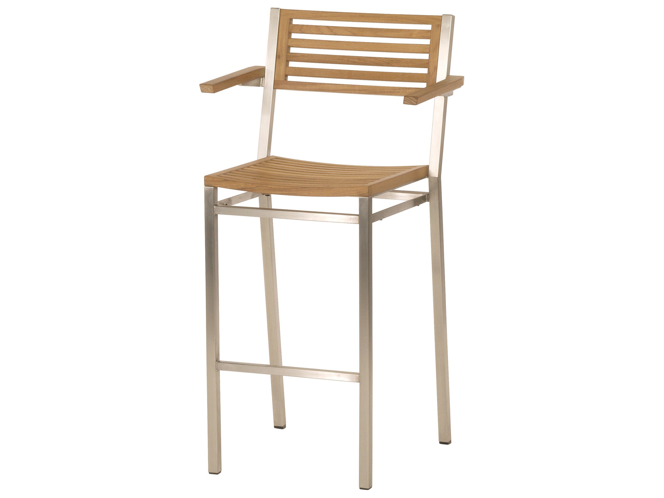 Barlow Tyrie Equinox Bar Stool - Natural Teak Arms - Stainless Steel Frame