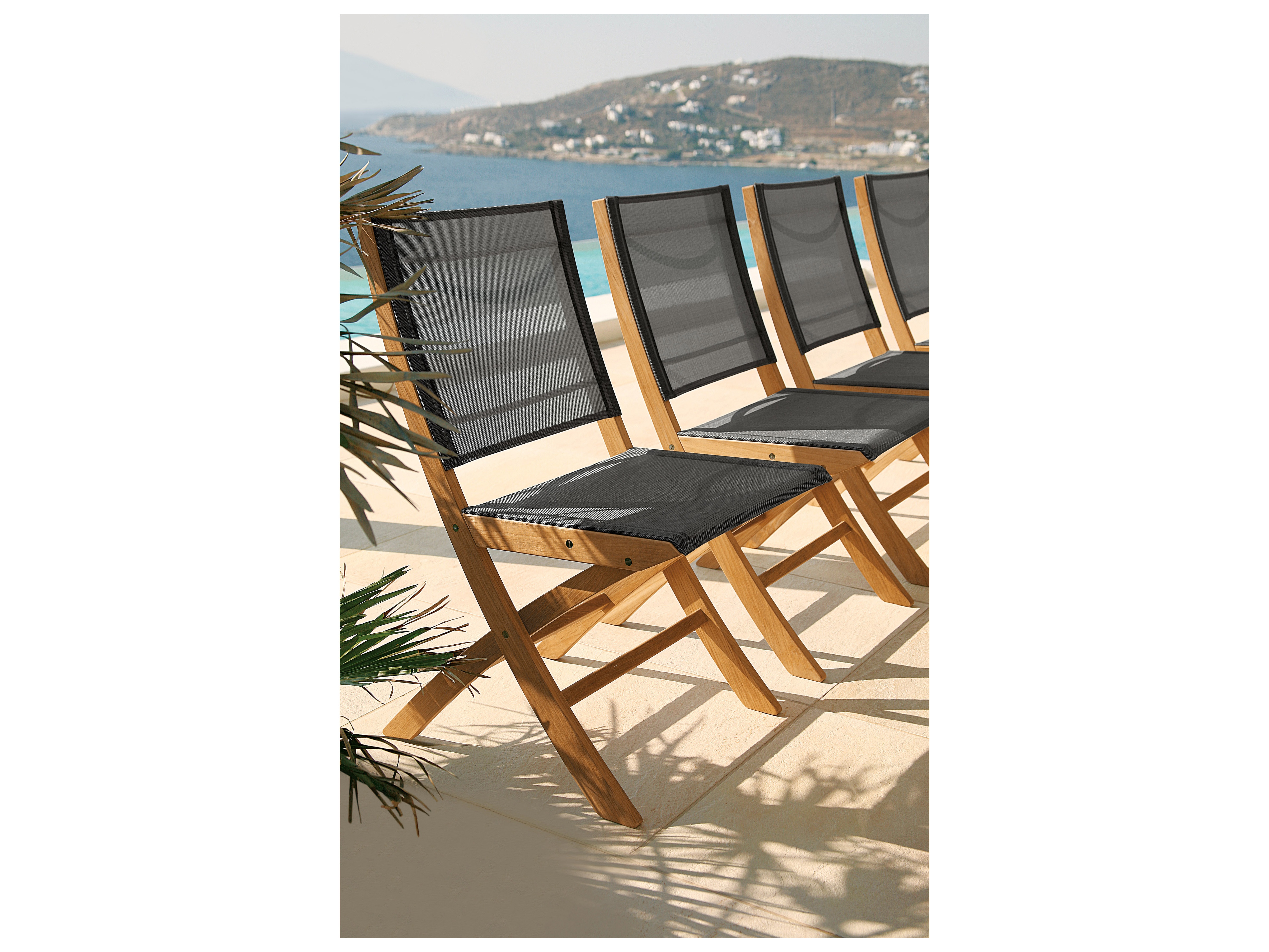 Barlow Tyrie Horizon Folding Dining Side Chair - Natural Teak Frame - Charcoal Textilene Sling