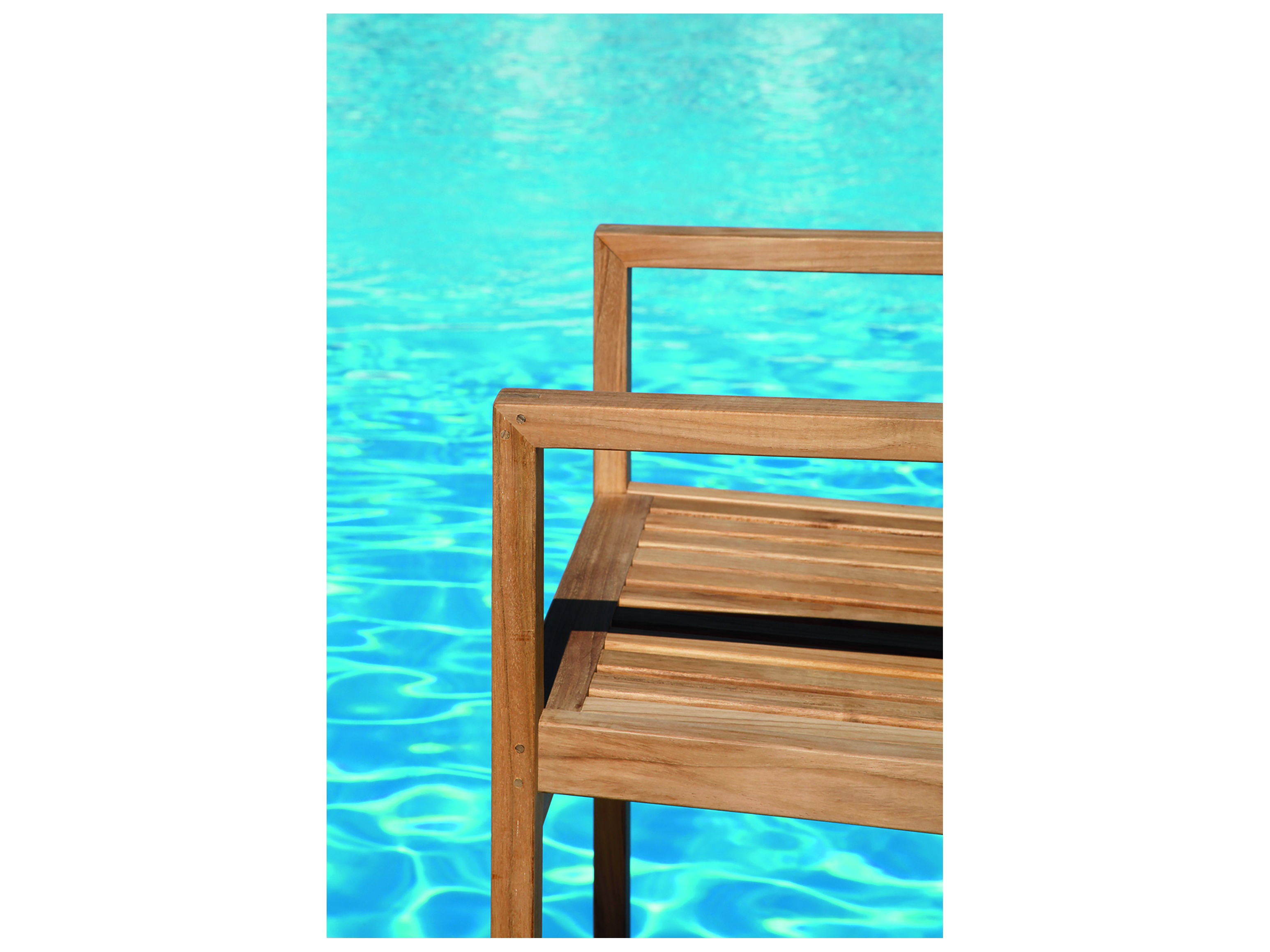 The linear dining outdoor dining chair is crafted from premium teak, accentuating its natural elegance and strength. With its vertical slats and decorative joint on the arm, this chair adds a touch of sophistication to any outdoor dining setup, making it perfect for gatherings or quiet evenings.