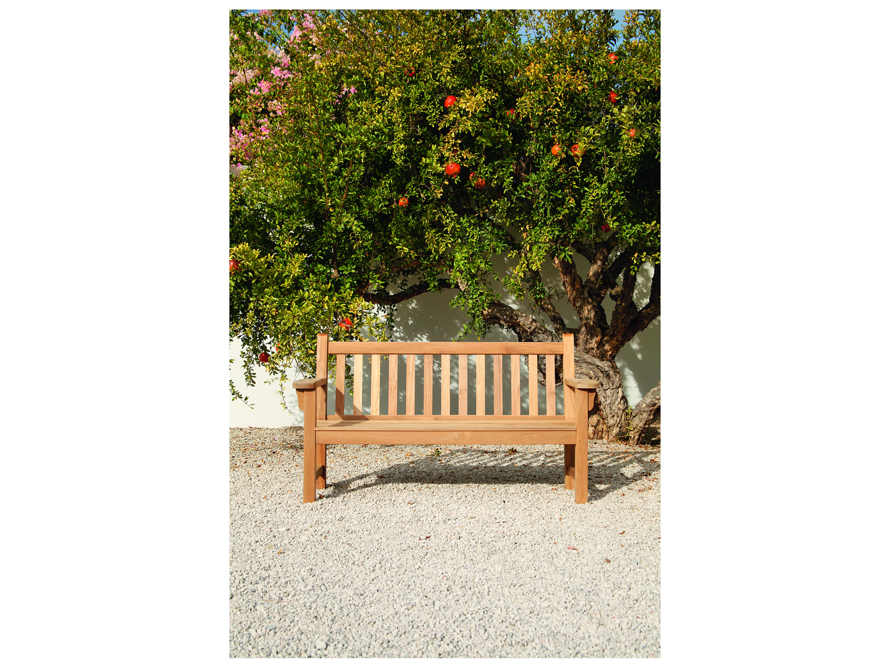 The London outdoor bench brings classic charm to your outdoor space with its timeless design. Crafted from durable teak, this bench offers a welcoming spot to relax and enjoy your surroundings. The wide flat arms provide ample space to rest a book or drink, making it a practical addition to your garden or patio.