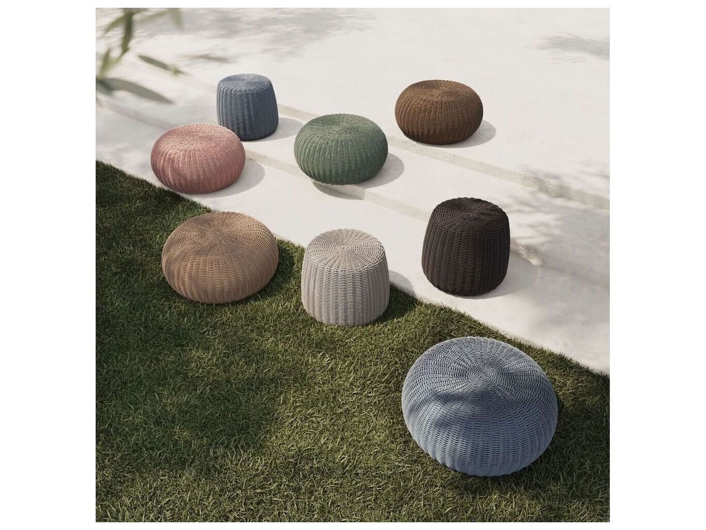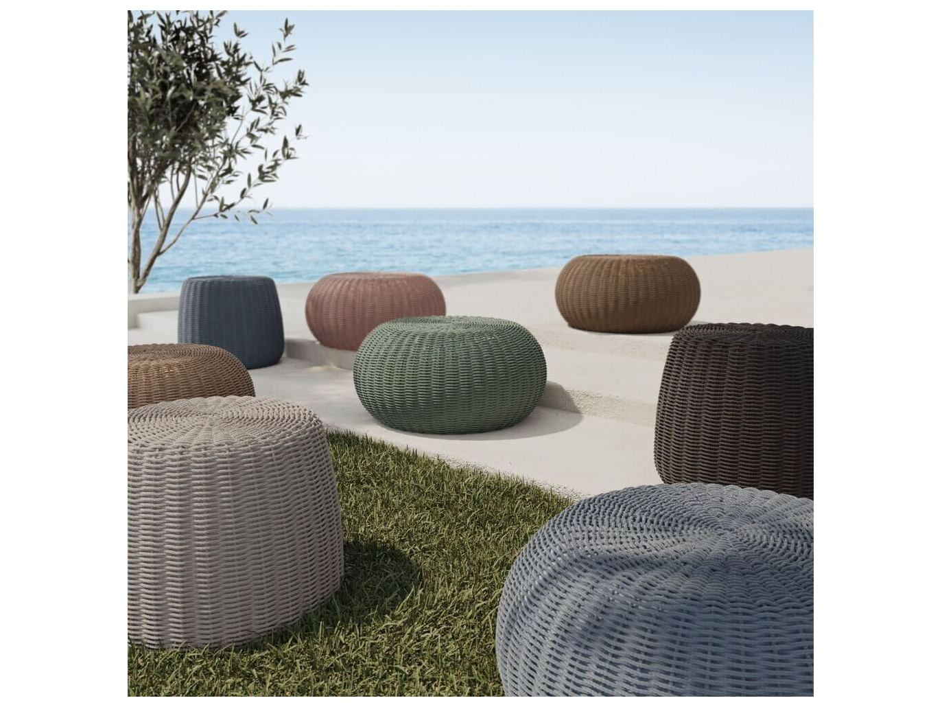 Add a pop of texture and laid-back charm to your outdoor space with the Cloud Woven Small Pouf 1991-1992-1994-1995-1997-1998-1999 by Ebel —an effortlessly stylish accent piece designed for both comfort and sustainability. Built on a durable powder-coated aluminum frame and wrapped in handwoven Eco-Weave made from recycled ocean plastic, these poufs offer a lightweight yet sturdy addition to any patio, deck, or poolside retreat. Available in seven vibrant colors and two versatile sizes, they're perfect for extra seating, propping up your feet, or layering in texture and function. Each pouf features a built-in reticulated foam cushion for quick drainage and fast drying. With all-weather durability and easy-care design, this is a piece that's made to last—and made to be lived in.