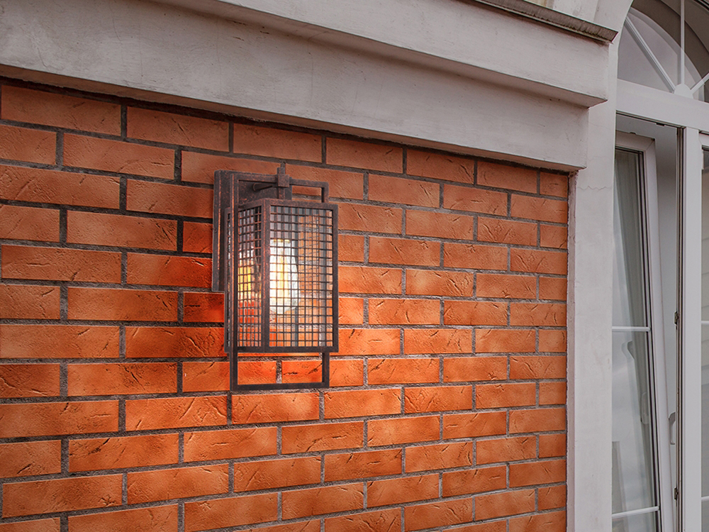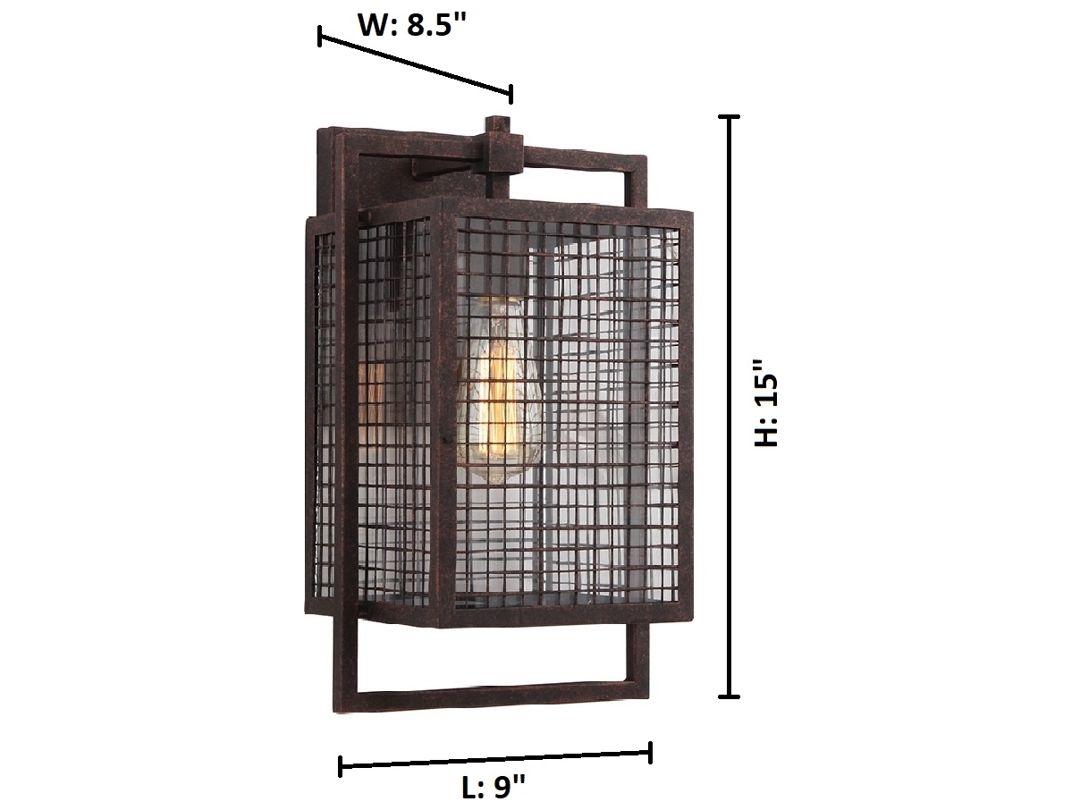 Bring a charming look to your exterior with the Garraux Outdoor Wall Light. This rectangular shaped light is enlivened by its clear glass shade, encompassed by an iron oxide finished cage. This rustic-chic wall light also accentuates the glowing bulb (not included), making it truly original for your exterior decor.