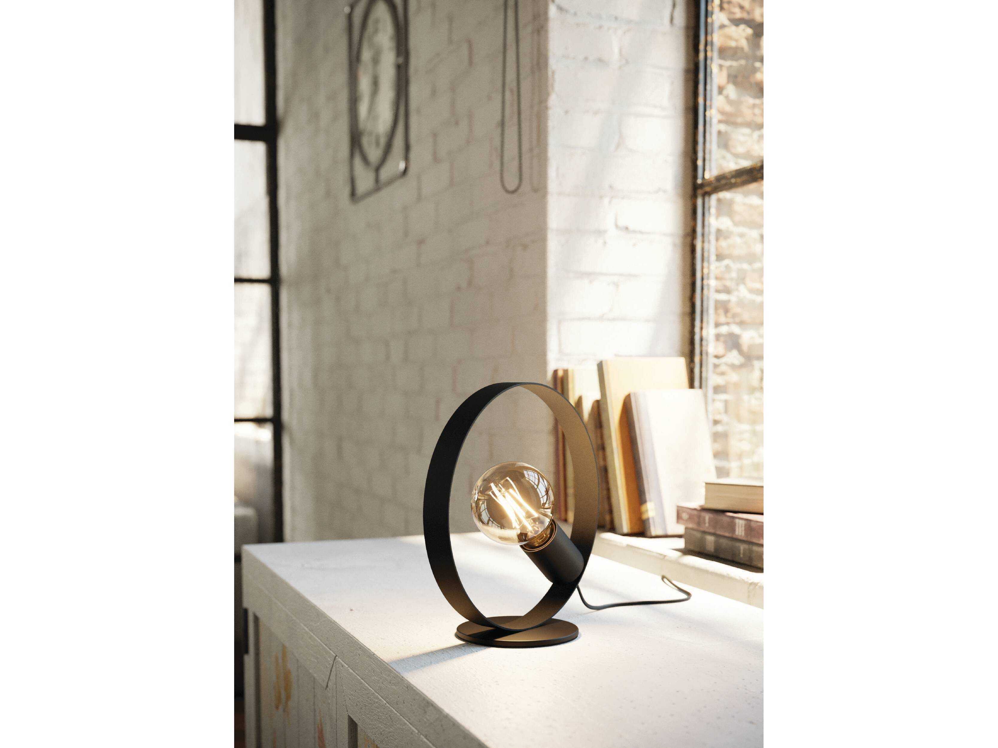 The FRIJOLAS table lamp features a black metal ring paired with an exposed light bulb. The light bulb socket is fixed at an angle, giving the table lamp a unique, retro look. The table lamp complements minimalist interiors. The light can be switched on and off easily with the in-line switch. Whether in the bedroom, living room, dining room or hallway, the product's linear design provides modern lighting for any space.