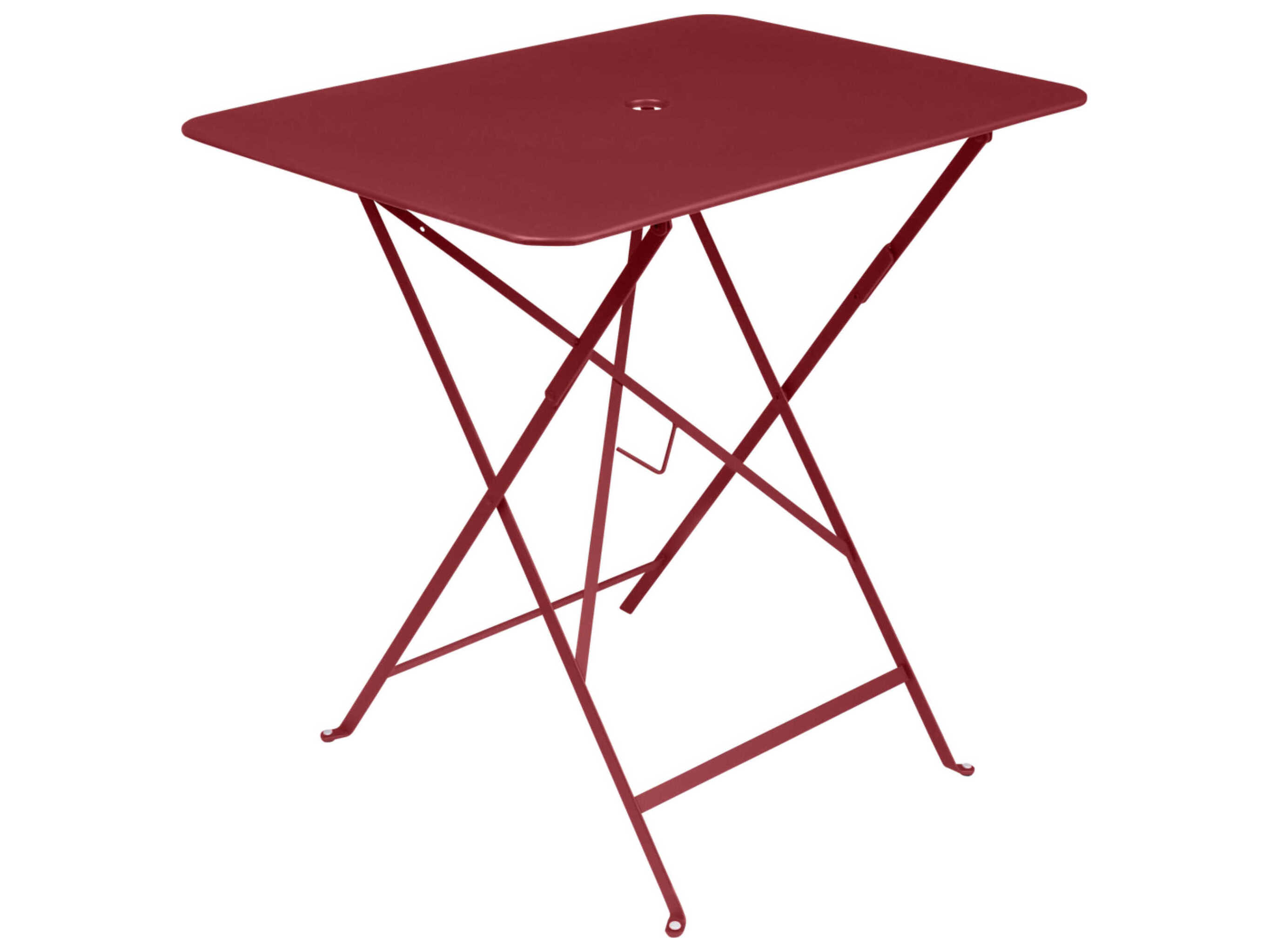 The 30" x 22" rectangular folding Bistro table includes a 1.5" parasol hole. Seats two people for dinner or four for drinks.