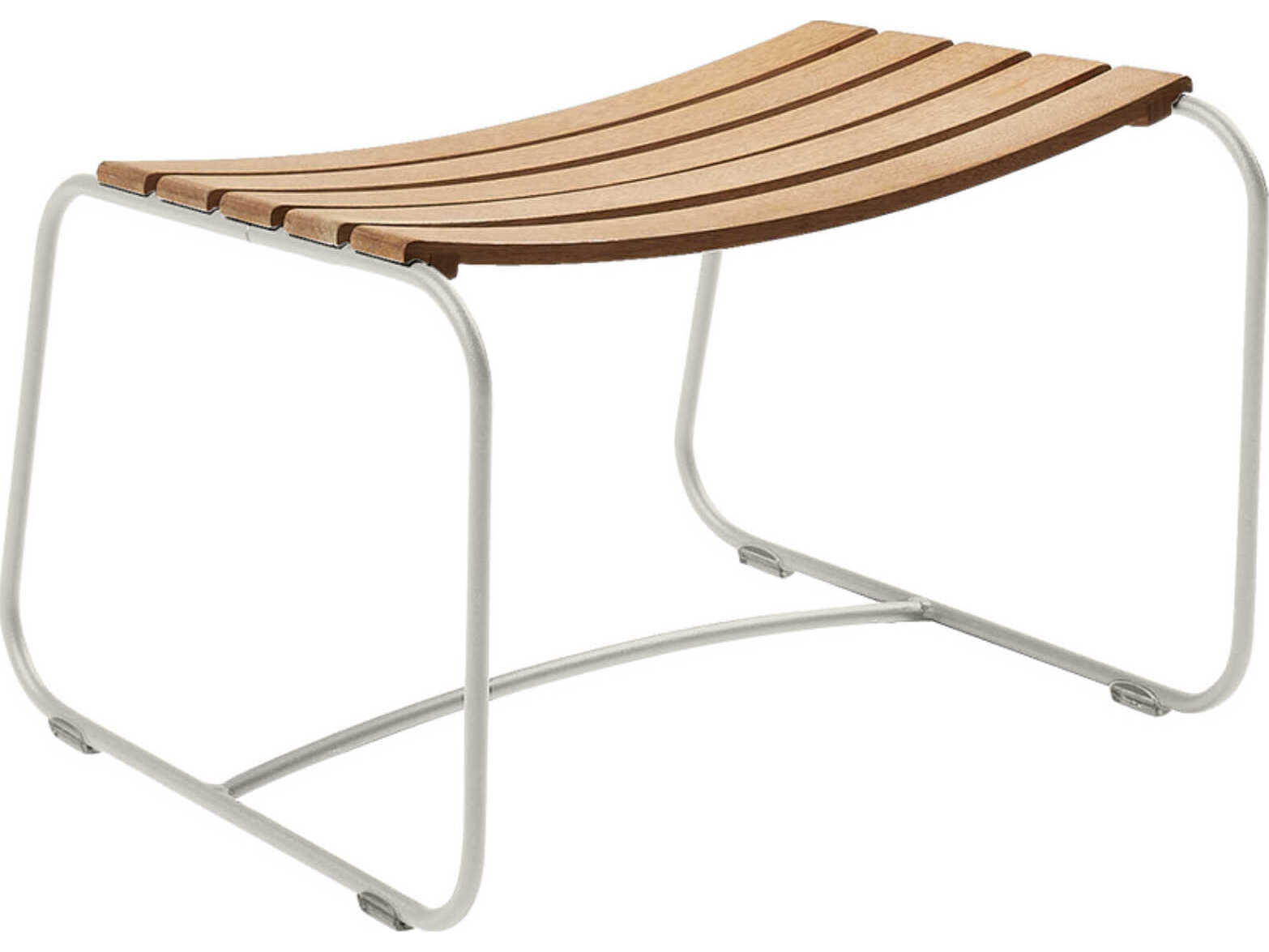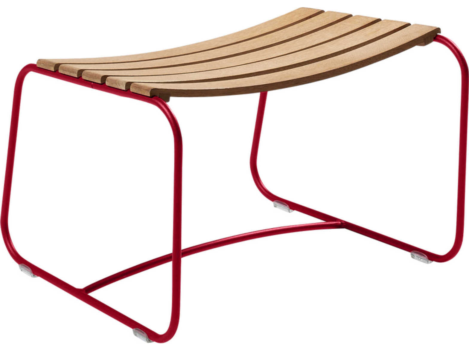 The Surprising footrest in teak blends the best of two elements, teak and steel. The trendy mixed material footrest is treated for outdoors, but can also be used inside to create a sleek lounge area. Pair it with the Surprising Teak low chair for a stylish duo. Due to the thickness of the teak slats, the footrest can only be partially stored underneath the low chair.