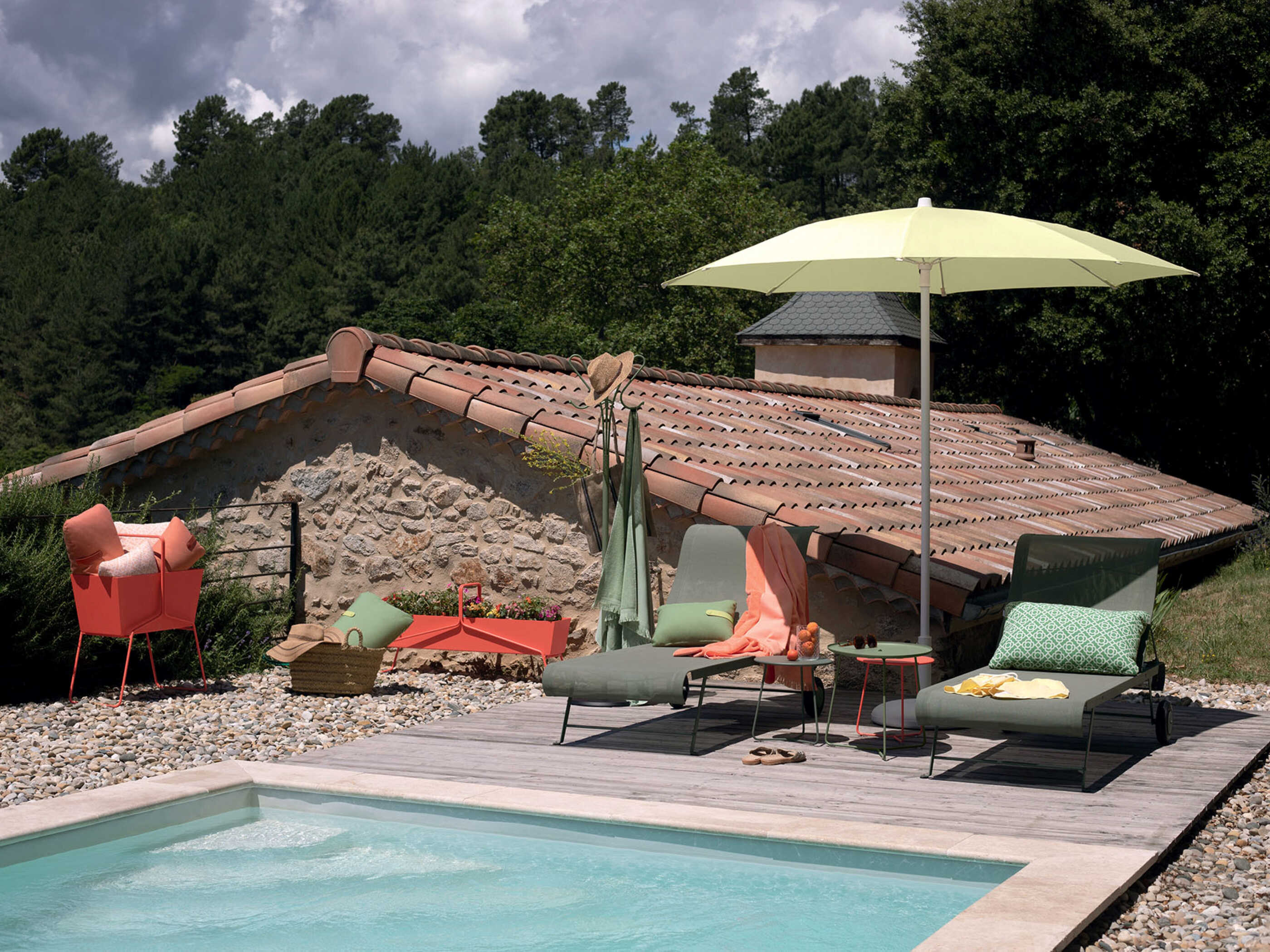 - As the raw material, steel, is subject to corrosion (rust) near salt air conditions and chlorinated pools, Fermob recommends customers in these locations choose one of Fermob's Collections made of aluminum. How long corrosion takes depends on the environment the furniture is in and has much variation across the country.