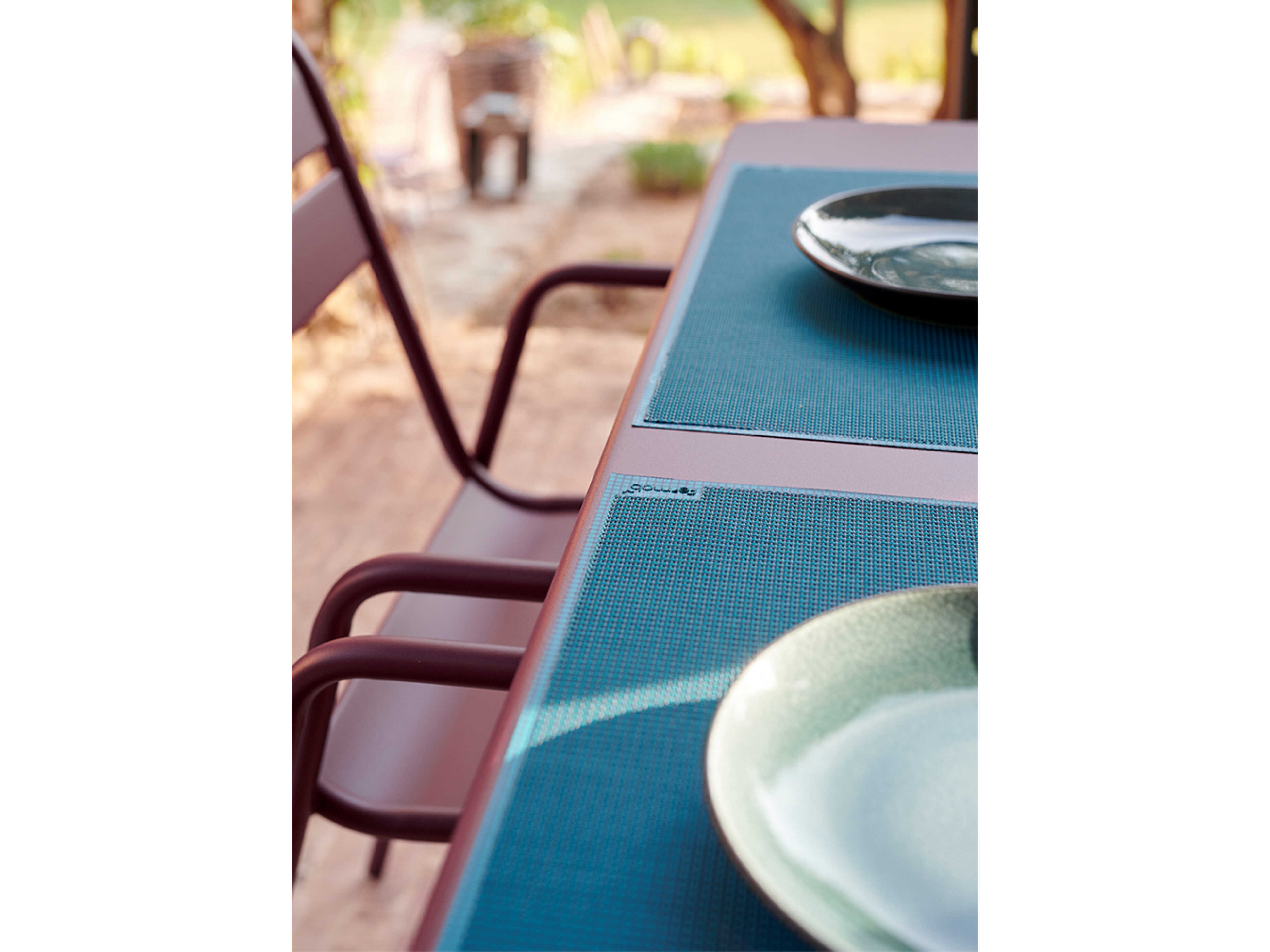Tired of plastic tablecloths with faded designs? Make room at your patio table for this 100% outdoor placemat that comes in a whole range of colors. This colorful Fermob placemat is made from polyester canvas that is resistant to tearing, UV rays, rain, and damp. It will never slip from the table and is also easy to maintain. It can be cleaned with soap and water.
