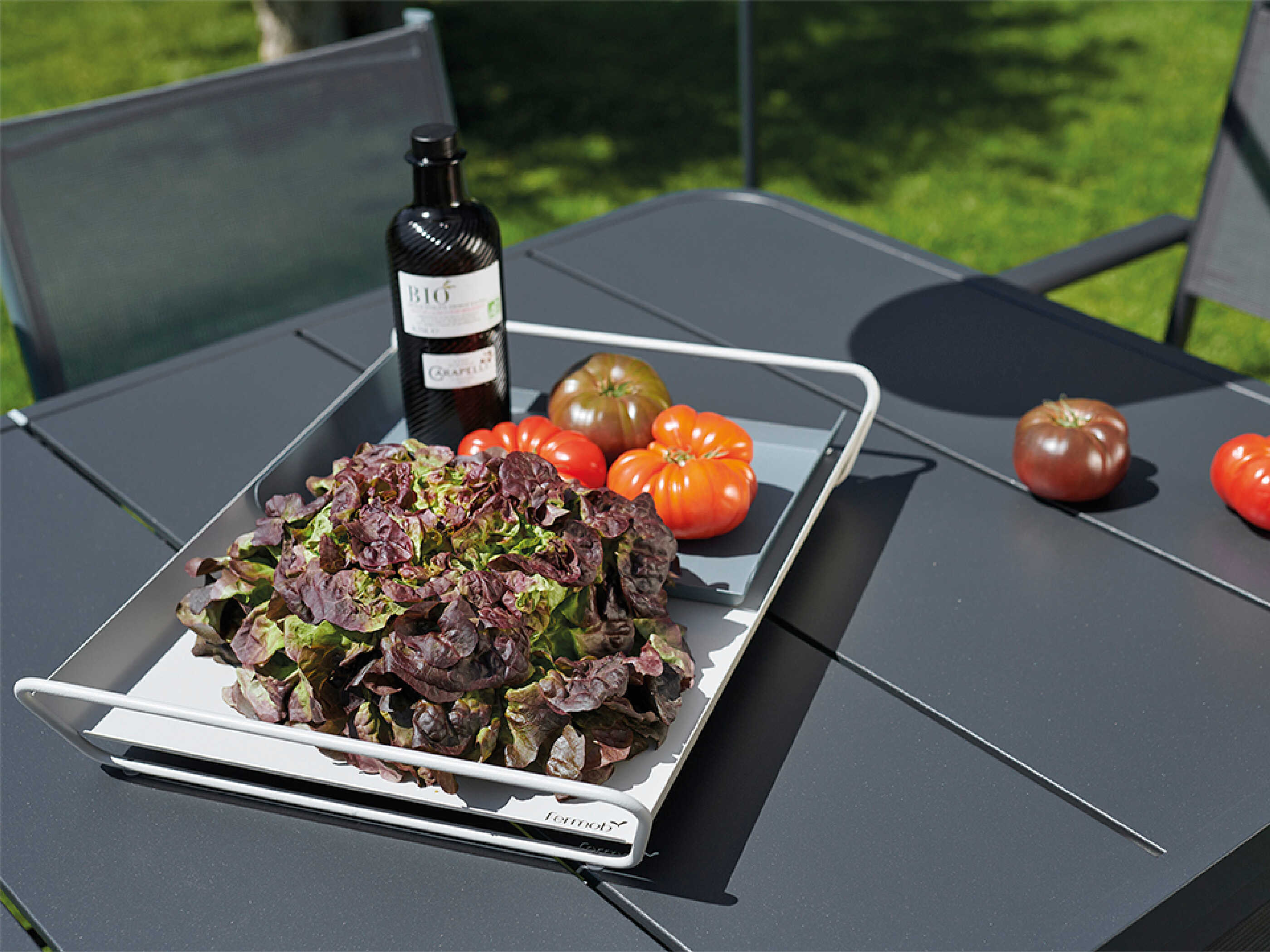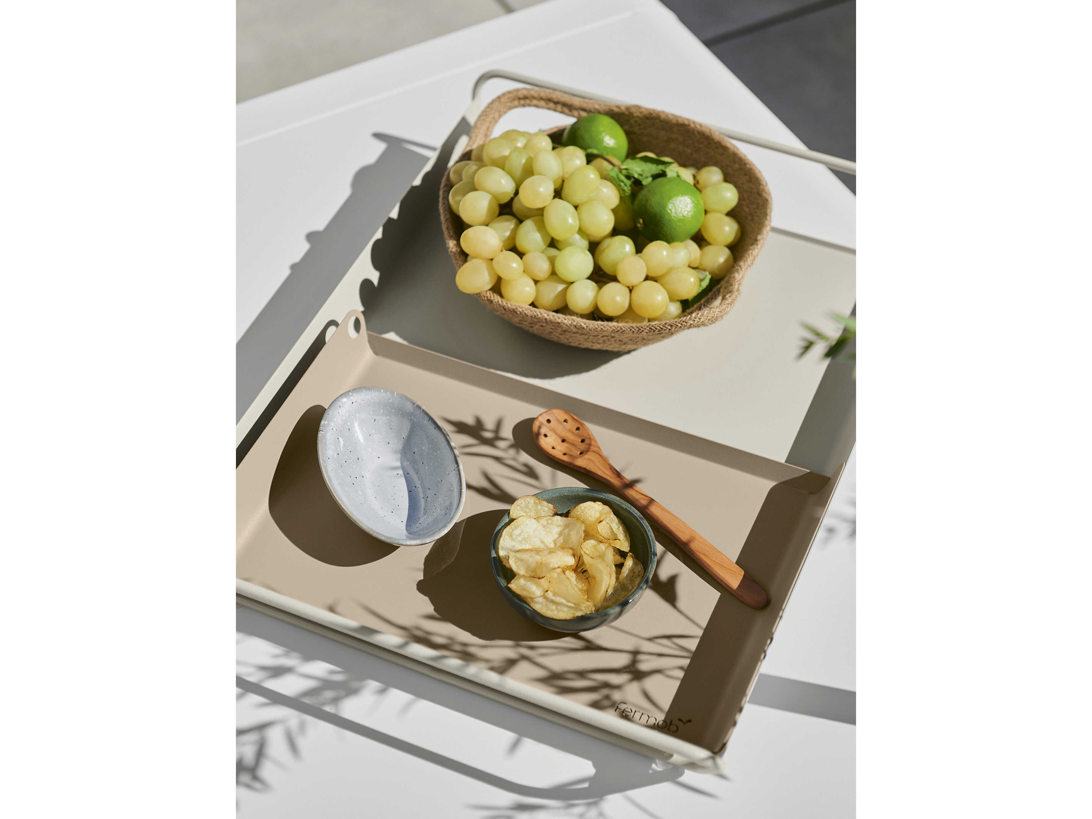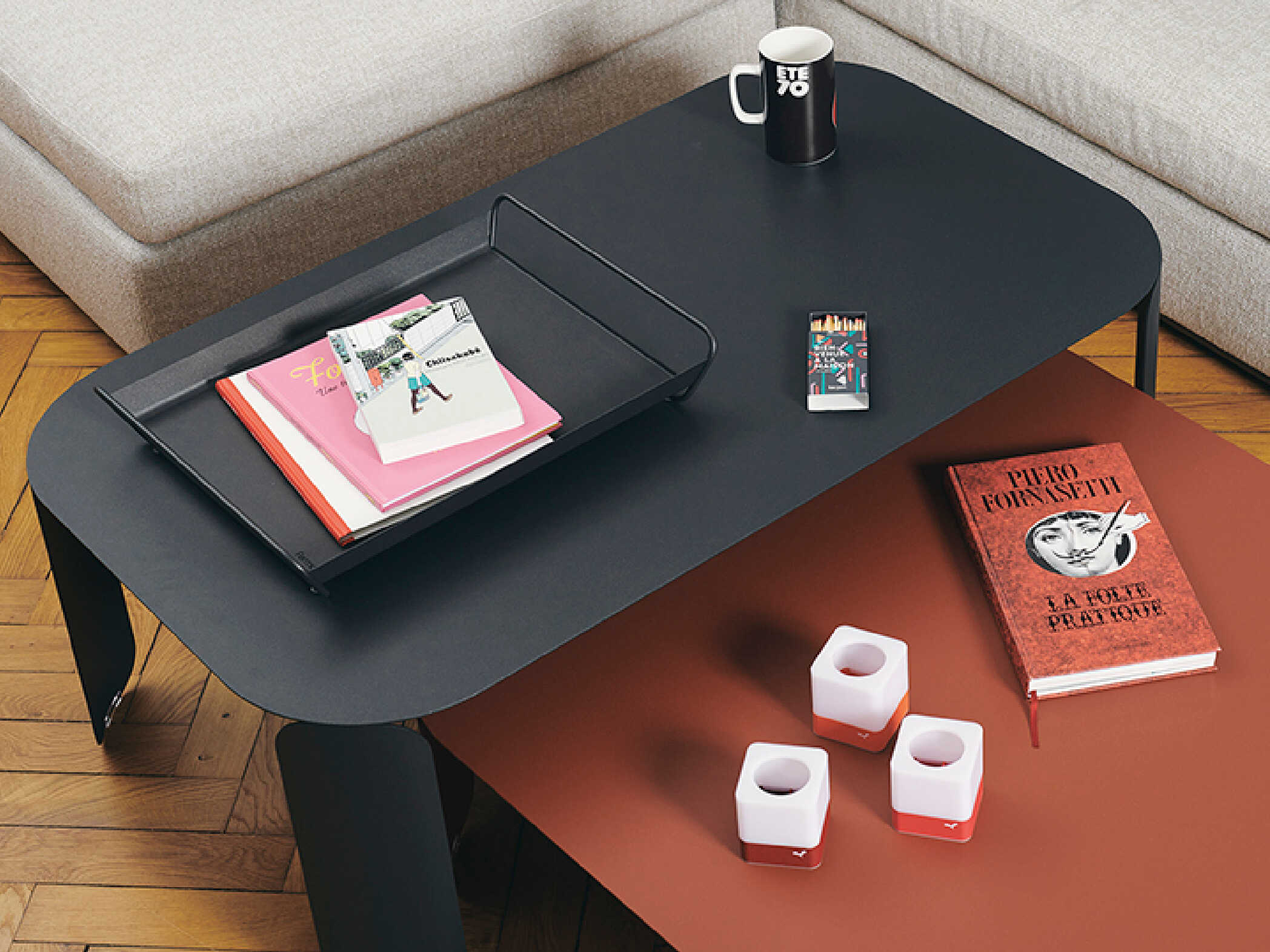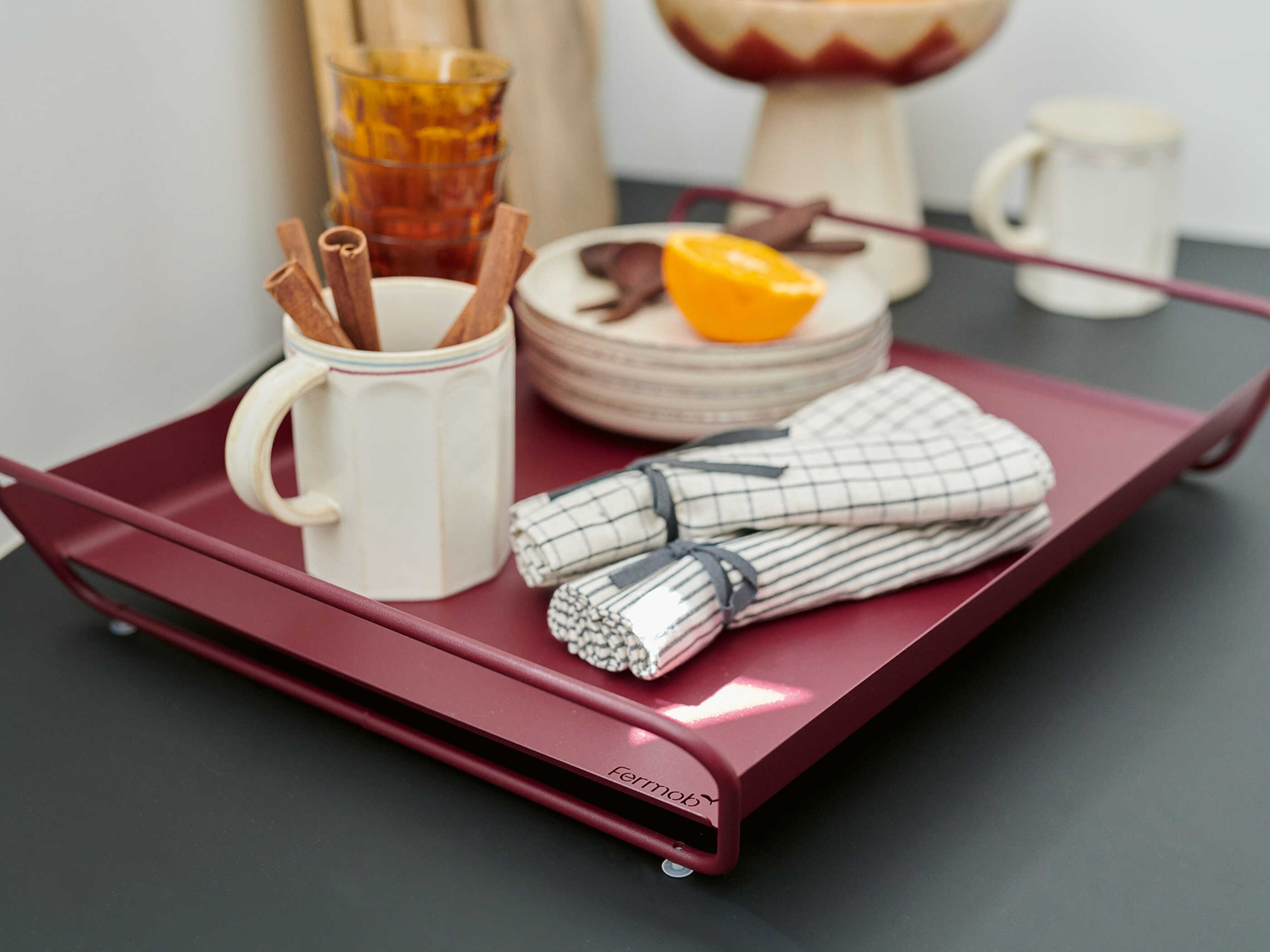 This Alto tray is a solid combination of sheet and wire steel boasts attractive lines and rounded curves. And as with all of the brand's furniture and accessories, it stands out for its design. Unlike traditional trays, Alto isn't a piece you'll want to hide away once its job is done. Instead, it looks simply stunning on the table. It's a practical, bold and elegant piece.