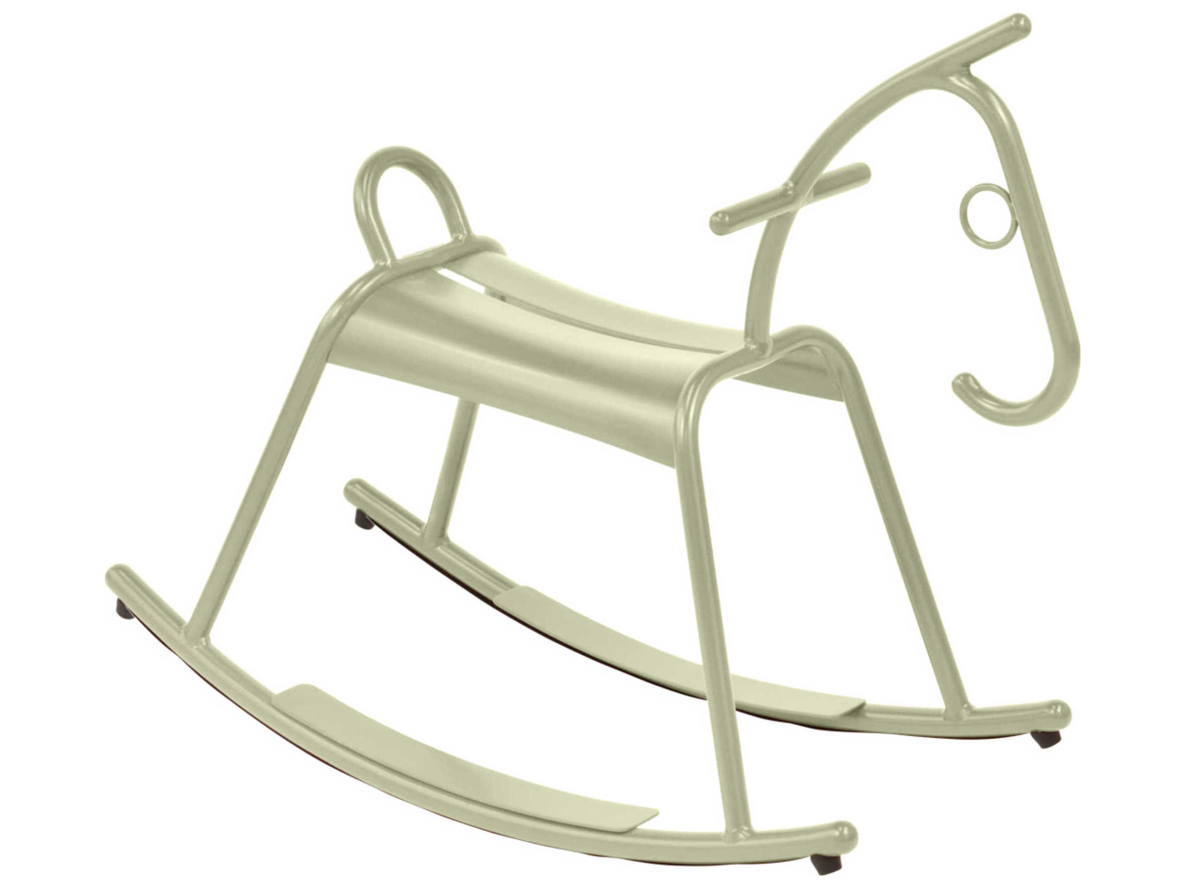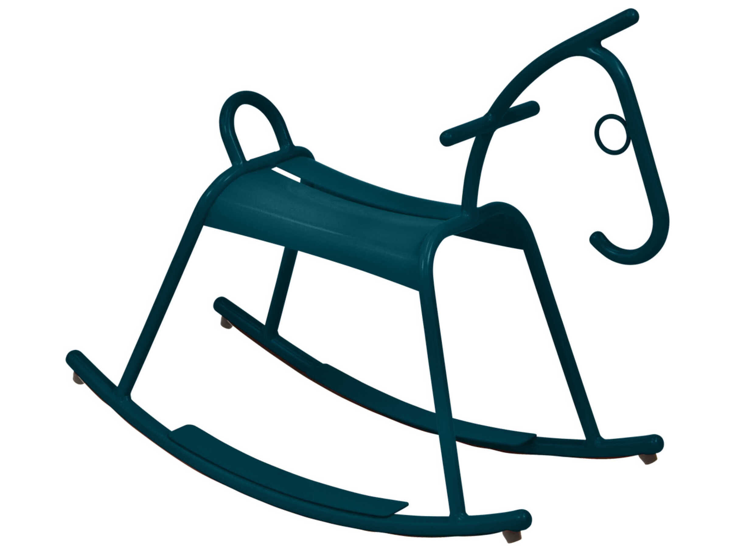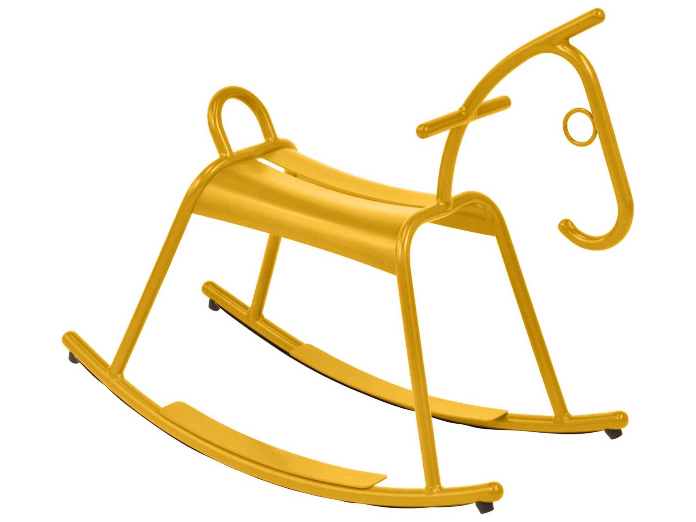 The newest member of Fermob's kids collection, the colorful Adada rocking horse is sure to provide children with hours of fun. Made with an aluminum frame and plastic pads, this children's rocking horse will make a special addition to the kids playroom or backyard.
