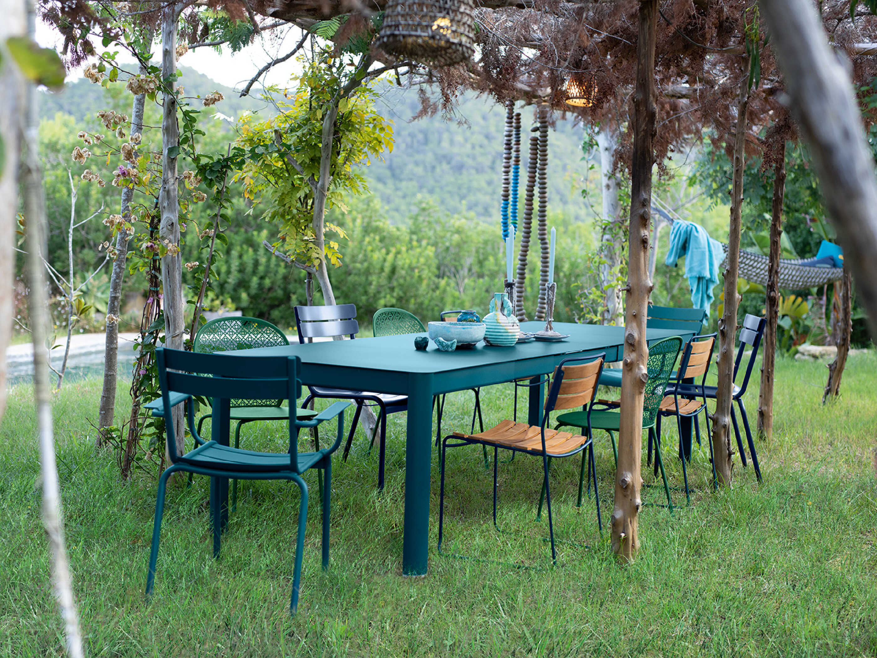 In 2004, Fermob asked Frederic Sofia to reinterpret the legendary chairs and armchairs of the Jardin du Luxembourg, created in 1923 in the Paris parks department workshops, and which Fermob still manufactures today for the city's public gardens. The result was a chair and armchair with distinctive lines and forms, combining the lightness and resistance of aluminum, the comfort of curved seat slats and the practicality of a stackable frame.