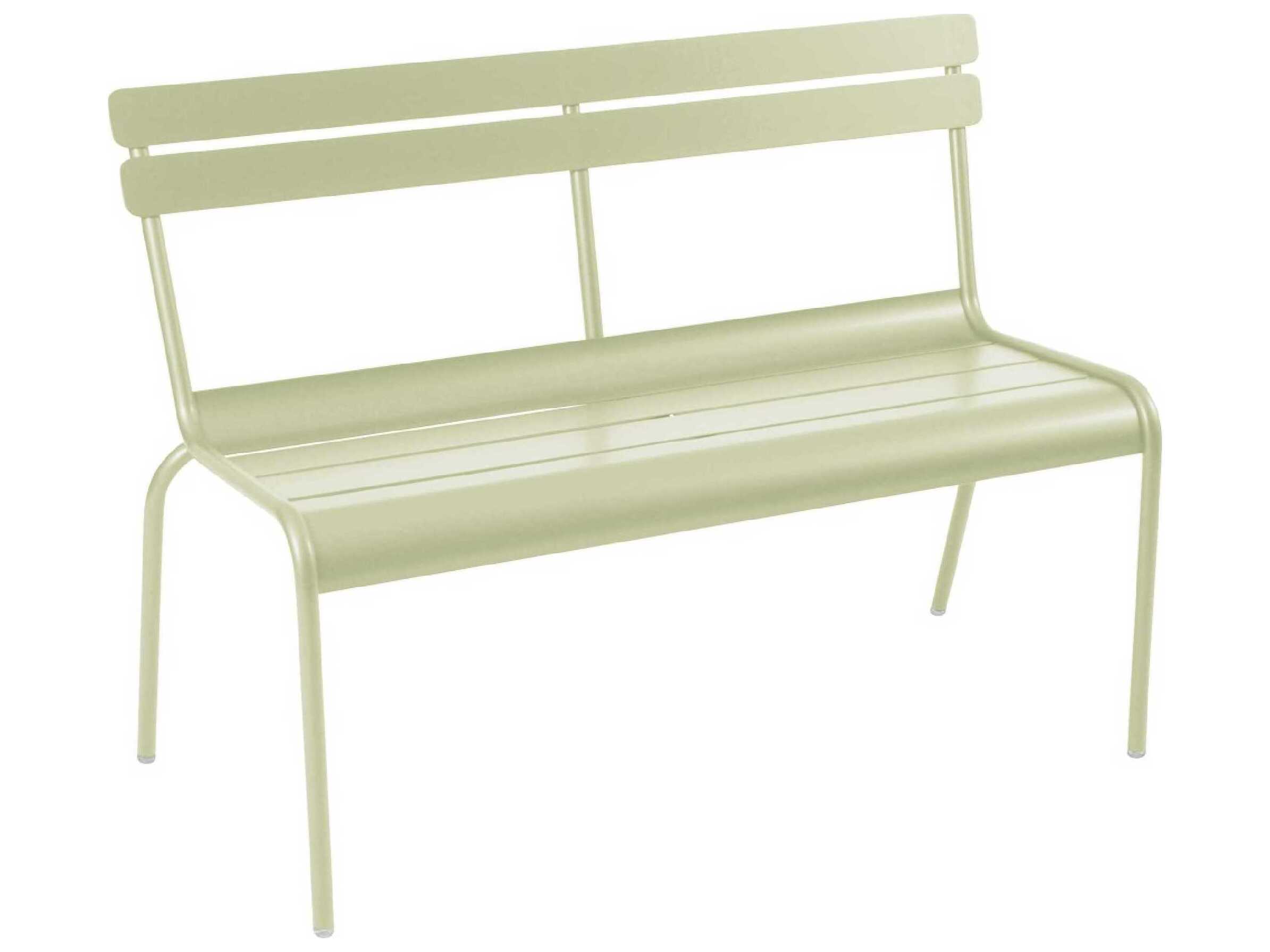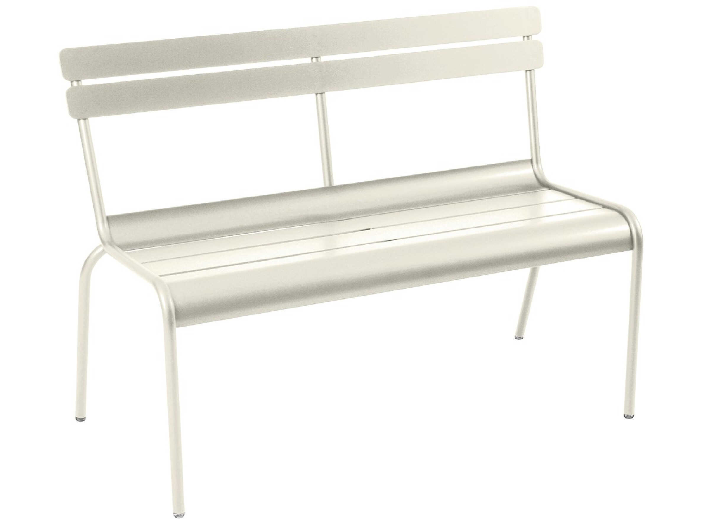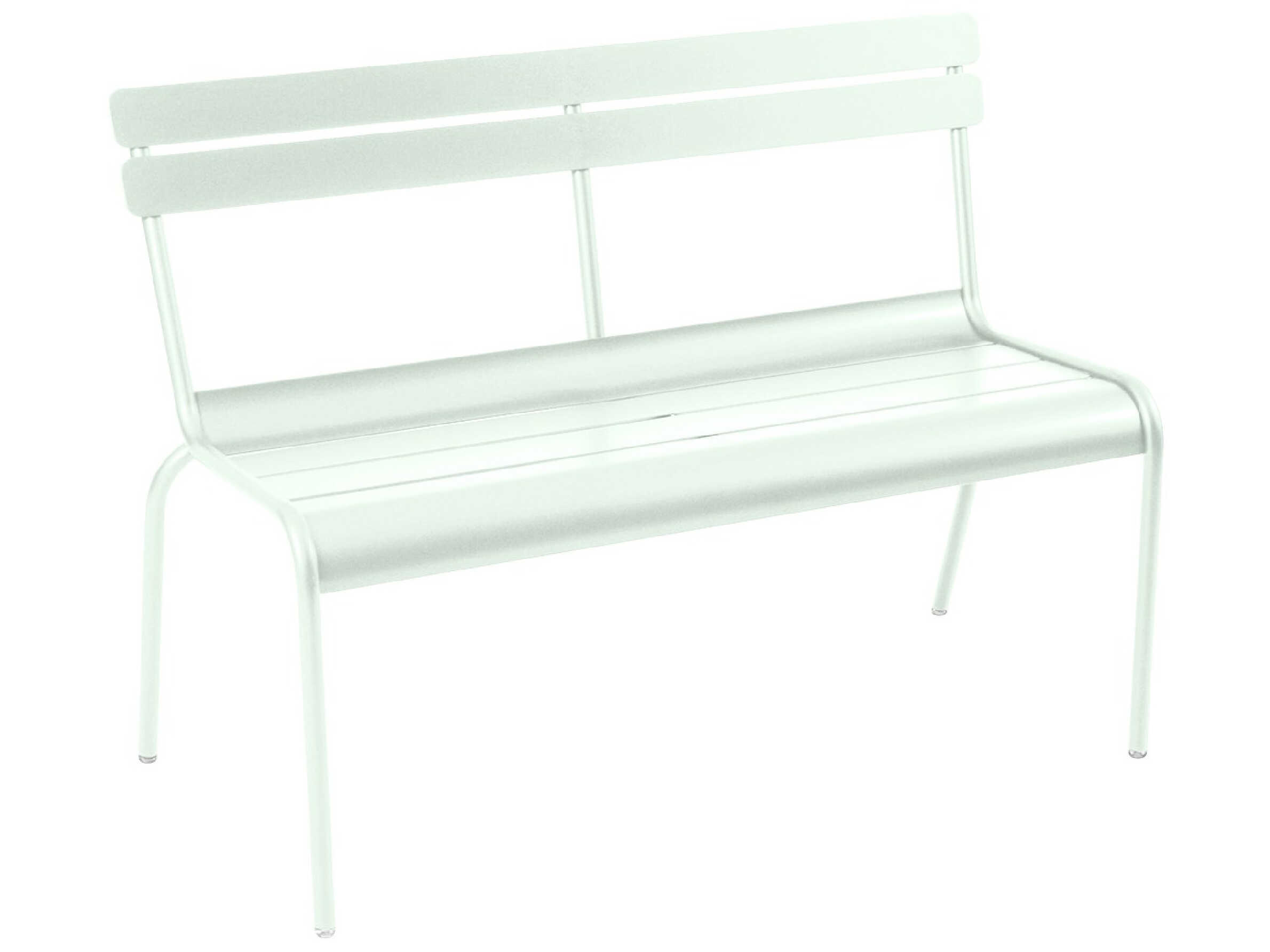 Designed by Frederic Sofia and part of Fermob's Luxembourg collection, the Luxembourg 2/3-Seater Bench with the backrest is a reimagining of a classic school bench. The curved aluminum slats make this bench a comfortable seat while the minimal design allows for versatility. This bench pairs excellently with the 56x32" and 65x39" Luxembourg tables, and it also makes a beautiful statement on its own.