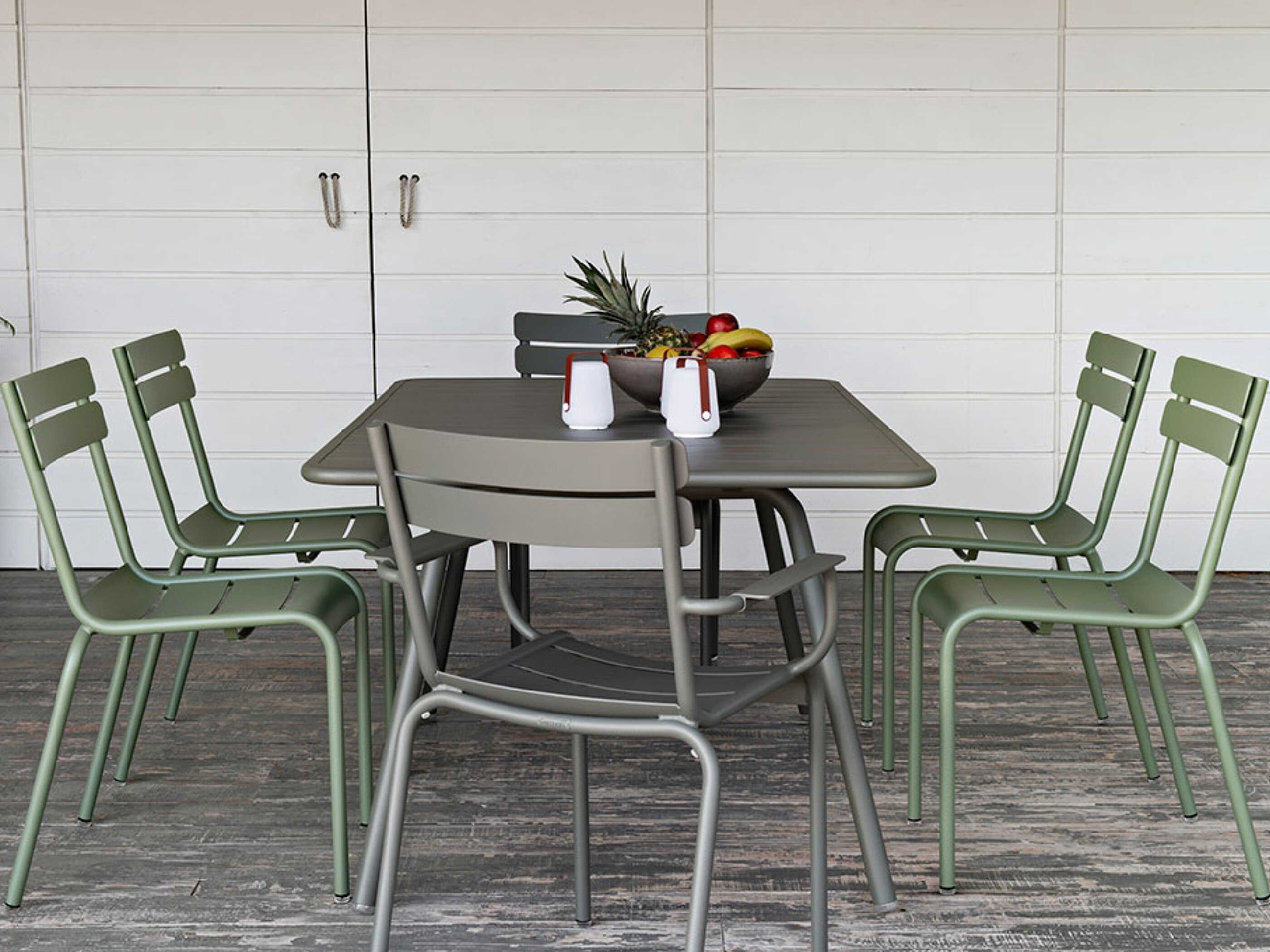 Designed by Frederic Sofia and part of the classic Luxembourg collection, this table seats up to six people and pairs perfectly with other pieces of the collection, including both the Luxembourg Side Chair and Armchair. The aluminum construction makes this table lightweight and easy to move in and out of transitional spaces while also providing a generous seating area for a variety of settings.