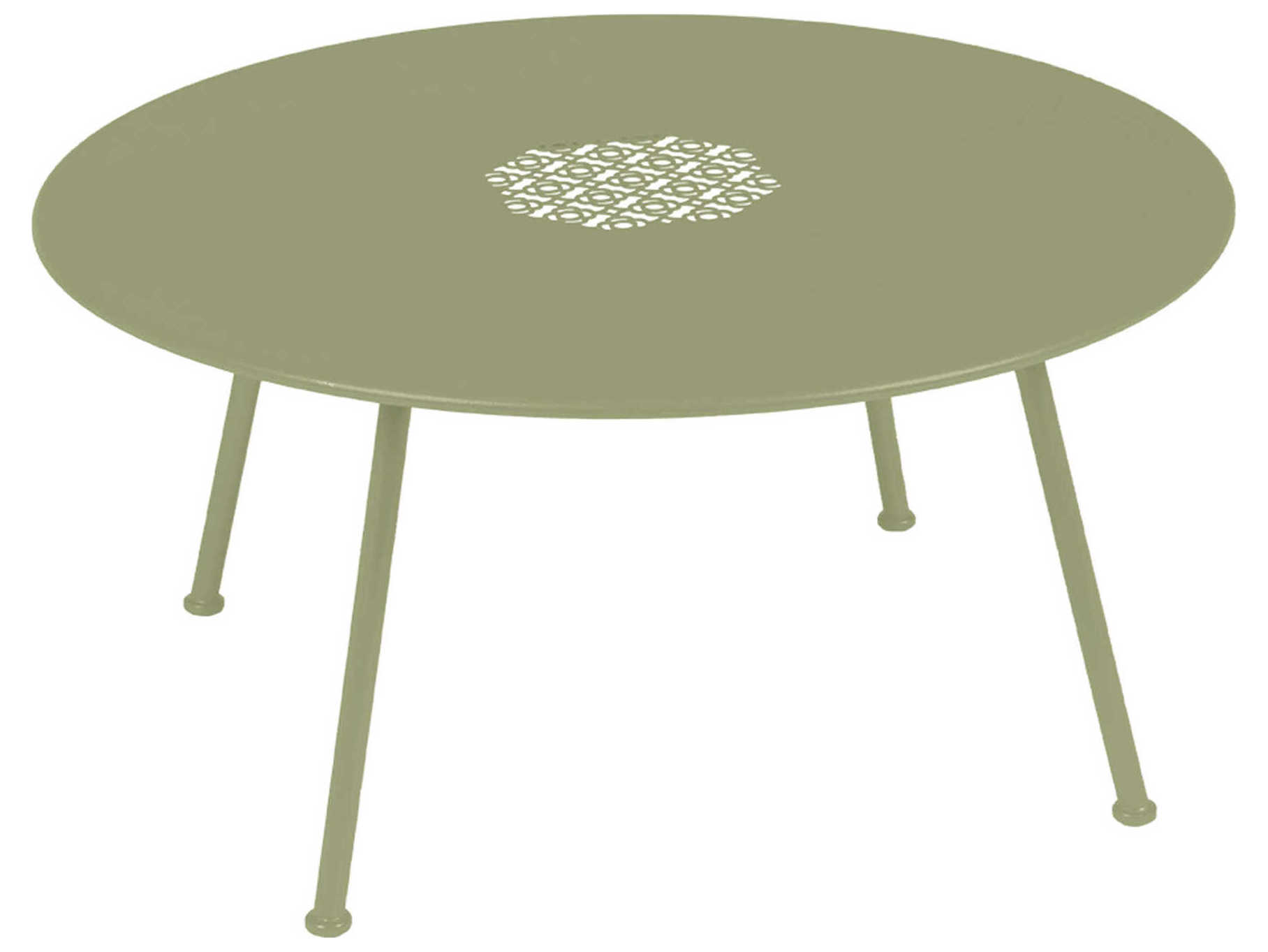 The Lorette collection is highly distinctive, embodying the Fermob spirit with a very strong graphic ambition and a mastery of metalwork that only Fermob possesses. The latest addition to the collection is a low table to accompany the low armchair. It features the collection's characteristic floral perforations in the center: a floral octagon that alone embodies the timeless country house spirit. Thanks to its design and polyester powder coating, this attractive low table is sturdy, UV- and weather-resistant, and generously proportioned at 31.5 in. in diameter.