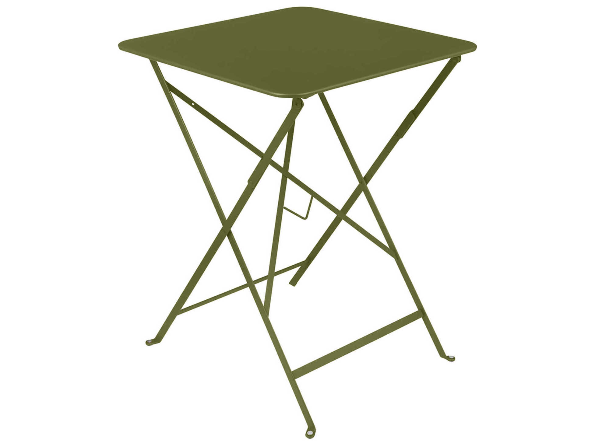 This little 22 x 22" square folding Bistro table is made of lacquered steel. Perfectly seats two, the ideal table for drinks or small meal.