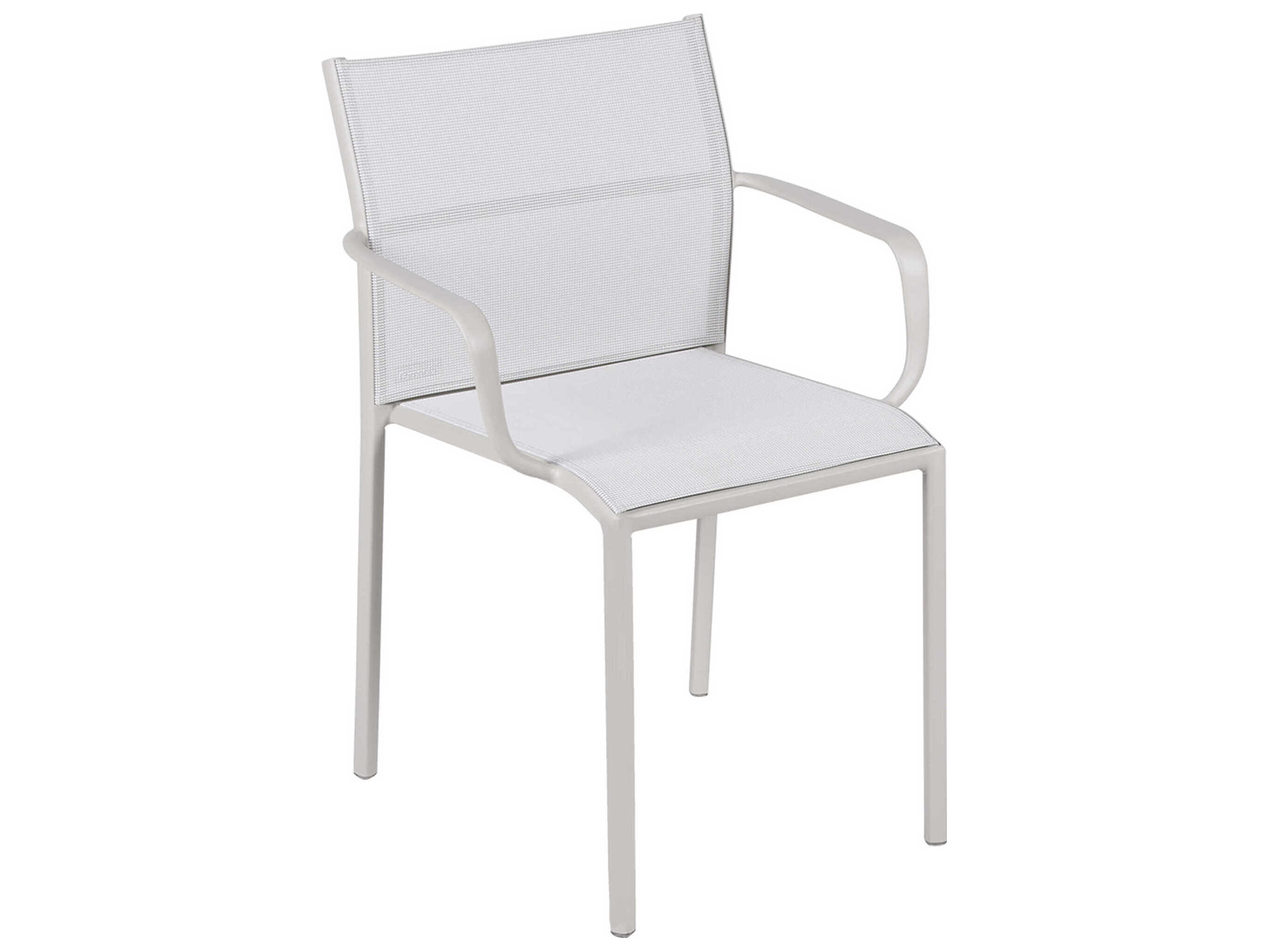 The Cadiz armchair is a modern combination of aluminum and comfortable outdoor fabric. The armchair is lightweight and can be used indoors or out for dining and entertaining.