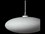 A large squoze sphere that looks to have been pressed on top and bottom to form its unique and delicate shape. Like the puff of a cloud (some also see a UFO) the Cloud is suspended on a low voltage cable. It's white tortoise shell-like glass glows from the light within.
