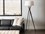 - Tripod floor lamp with a fabric shade. Dimmer switch located on socket.