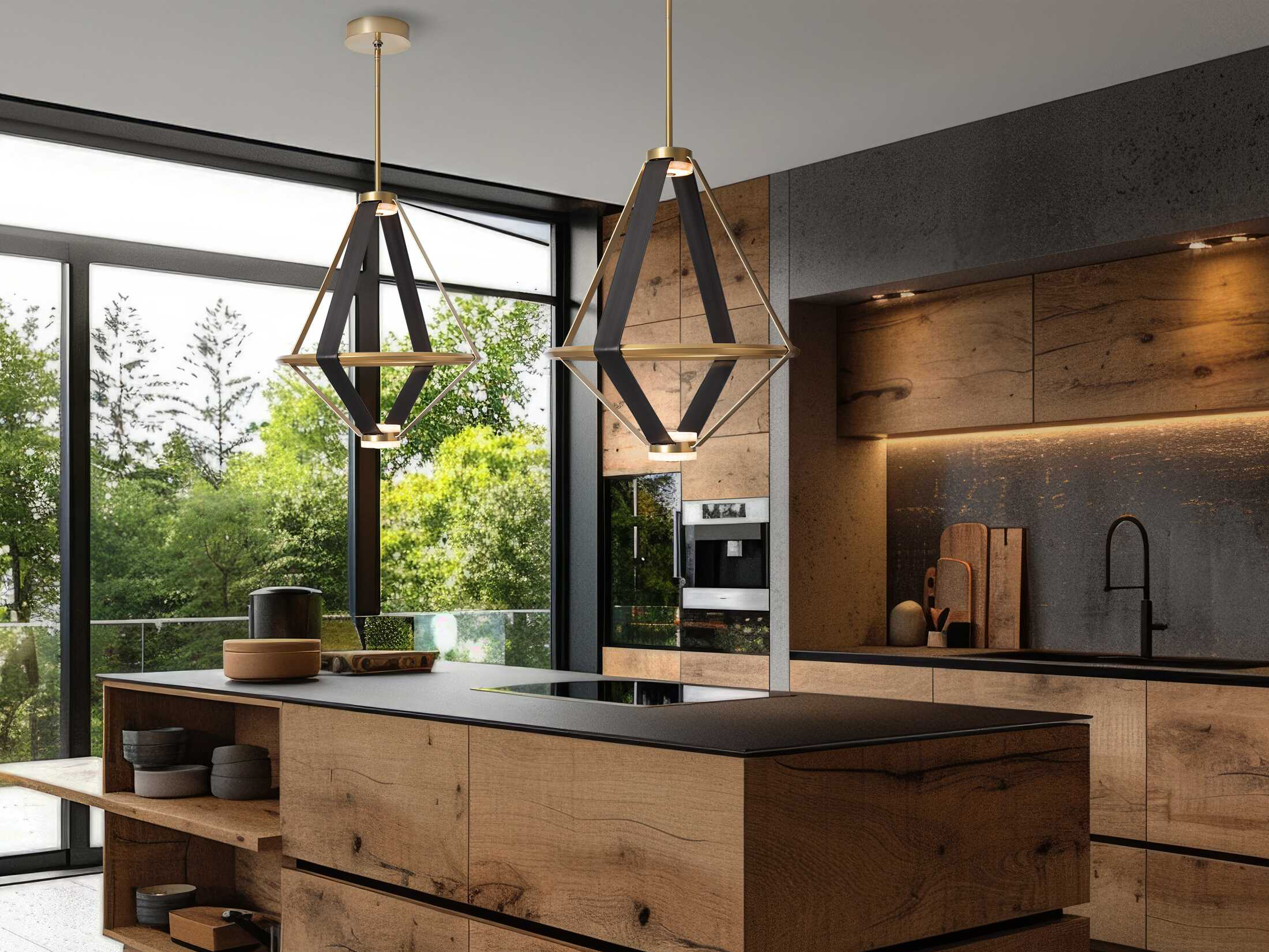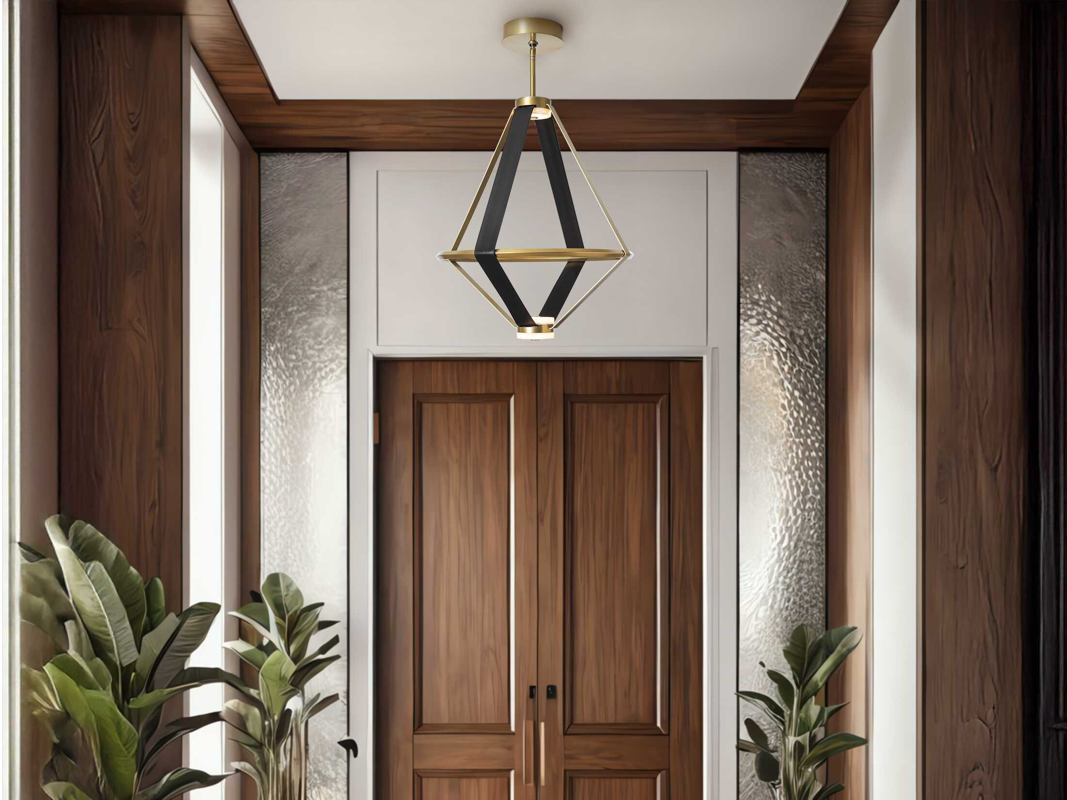 - Choose a finish for the fixture and an accent for the leather straps
