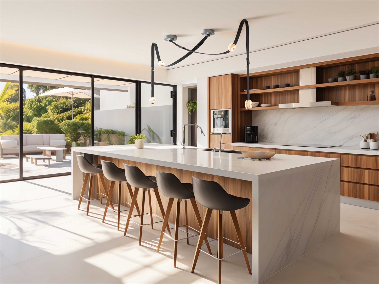 - Modular LED pendant light with leather straps and alabaster details. Includes one alabaster LED module, one long leather strap and one shorter leather strap. Integrated mini-mount allows for remote driver installation for a minimal wall mount appearance. Alabaster is a natural material and comes in a wide variety of color and marks. No two pieces are the same.