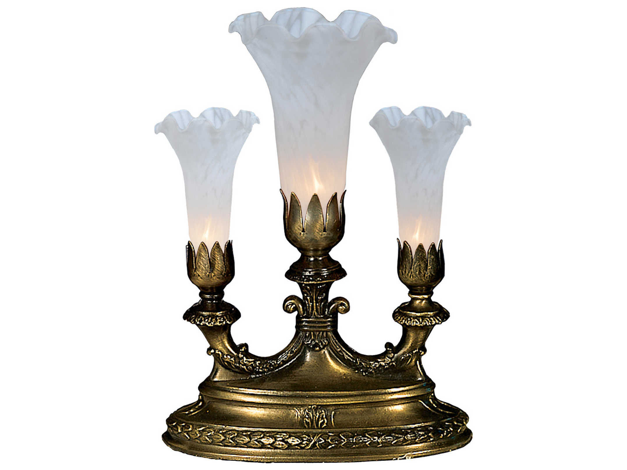 Meyda White Tiffany Pond Lily Glass Bronze Traditional Table Lamp