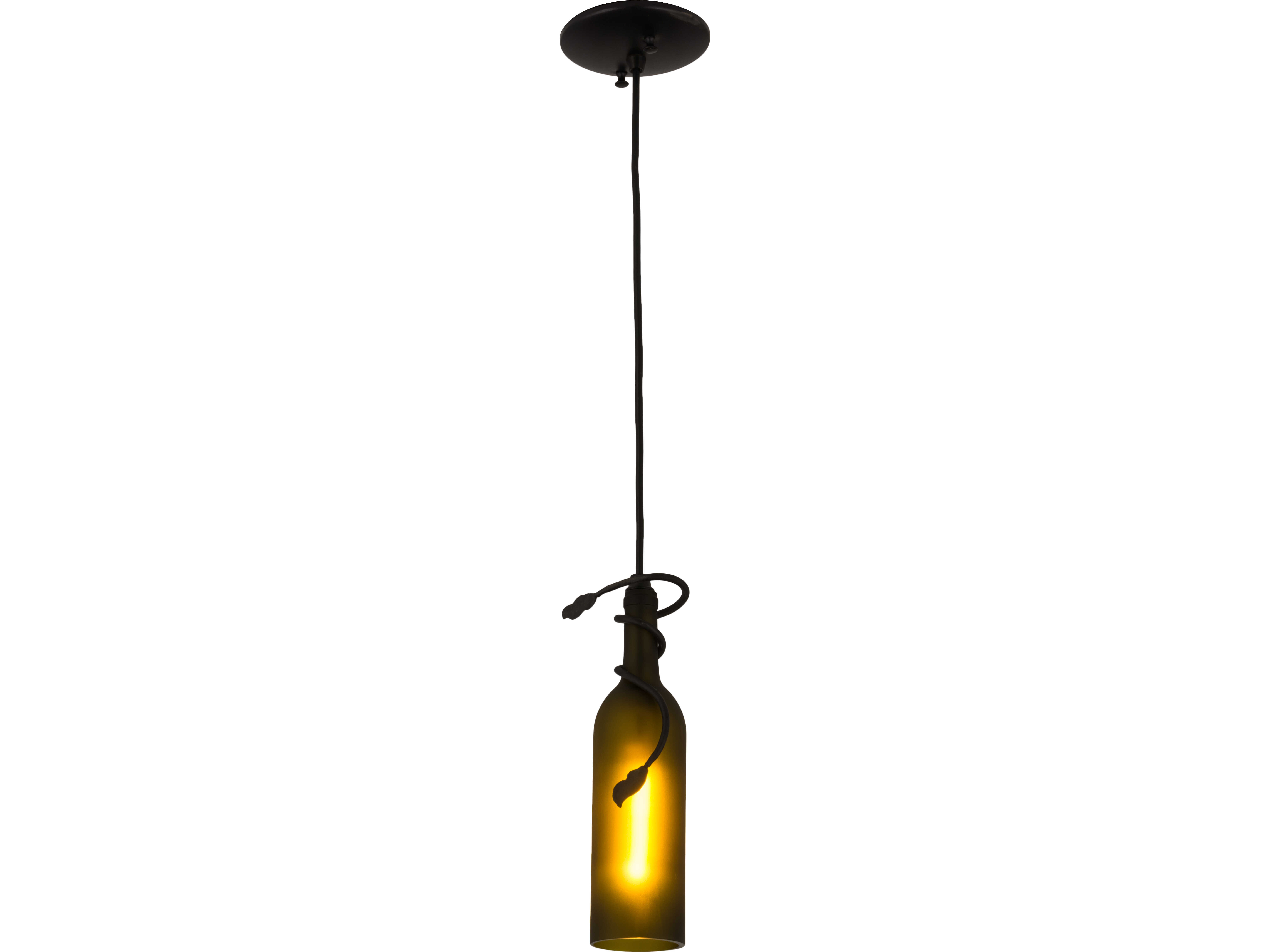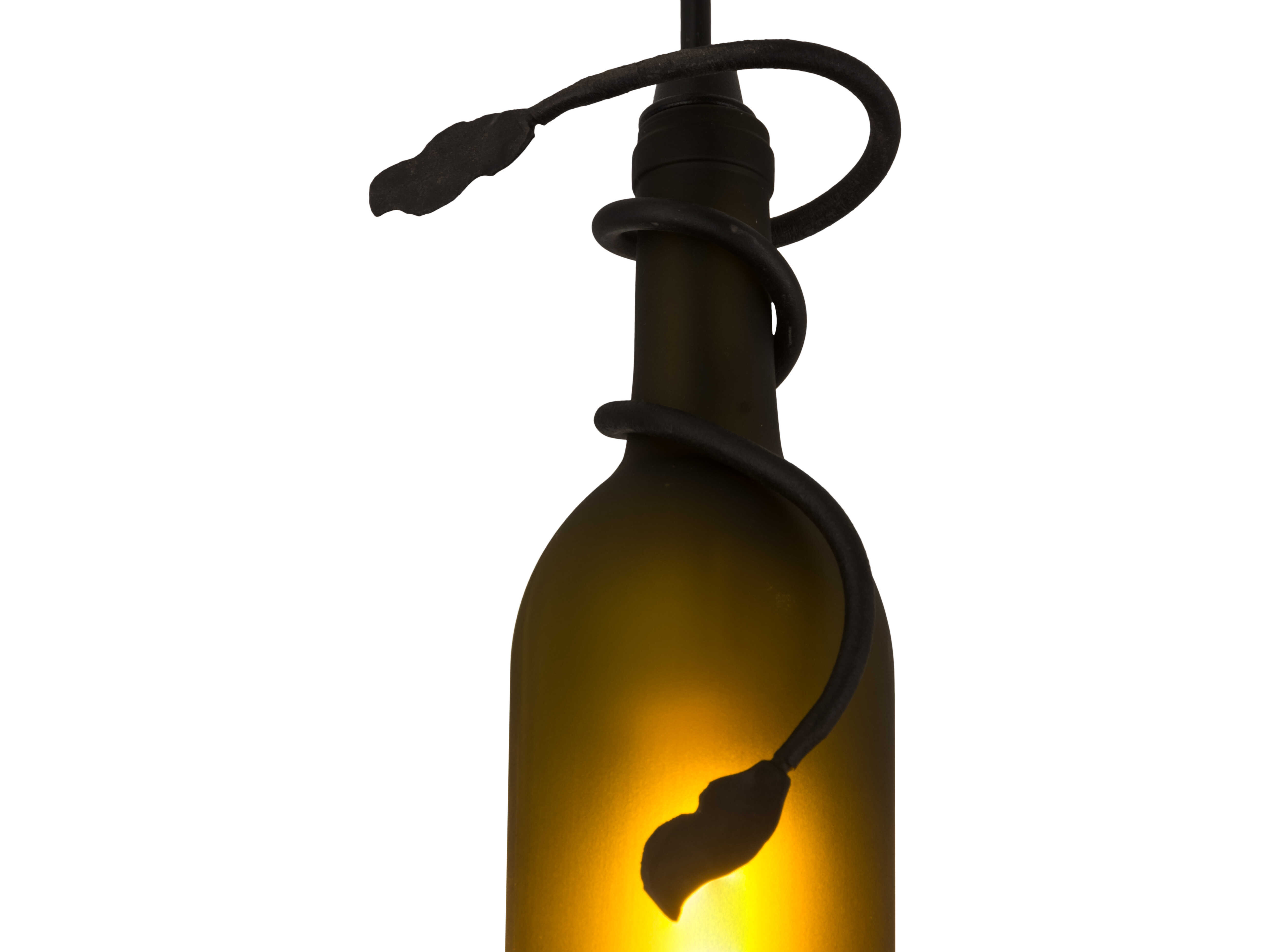 A hand forged vine and leaf coil around the neck of this handsome Weathered Leaf Green wine bottle that has been softly etched for diffusion. Your connoisseur will appreciate the detail and vintage of this charming accent mini pendant.