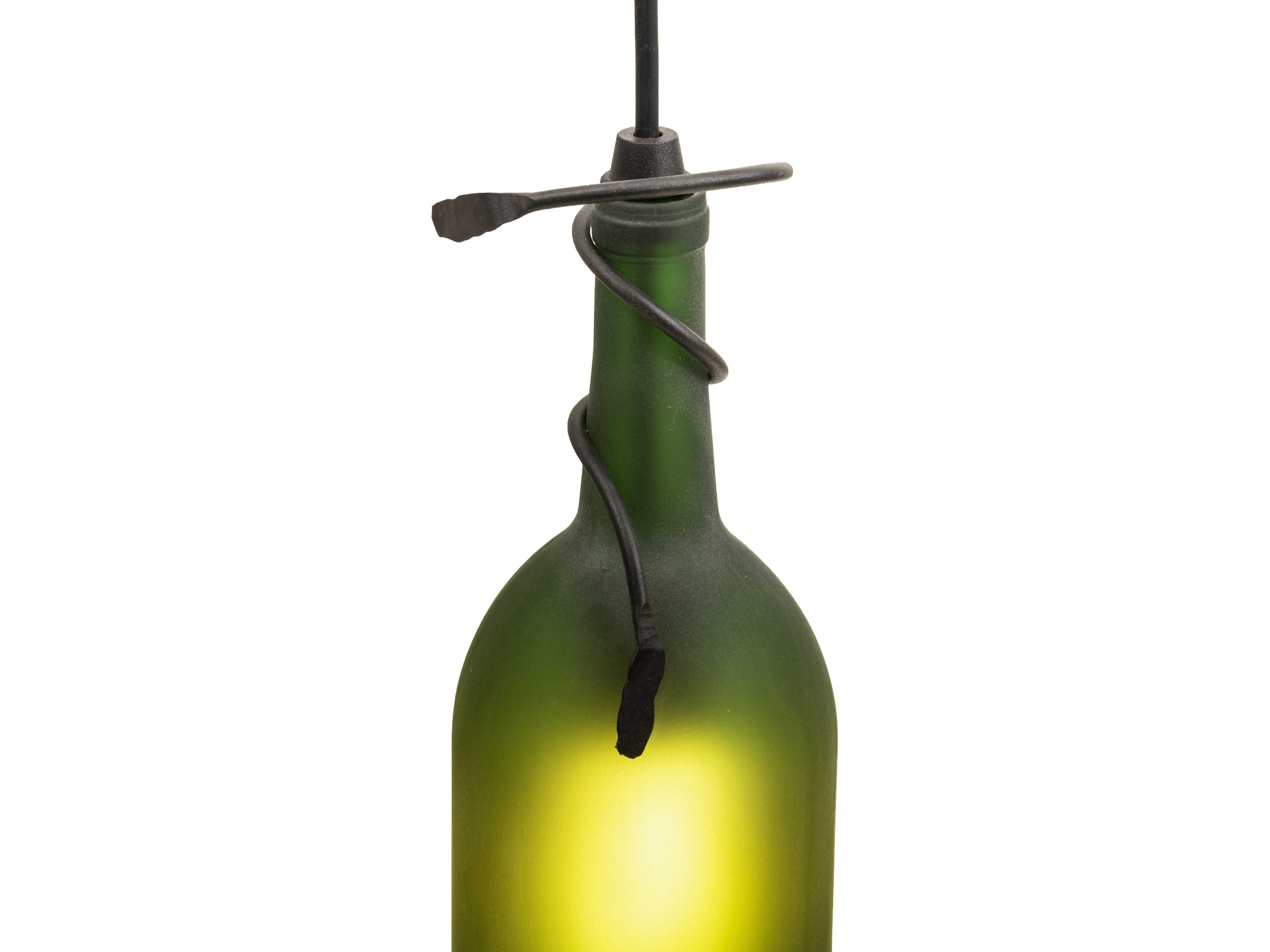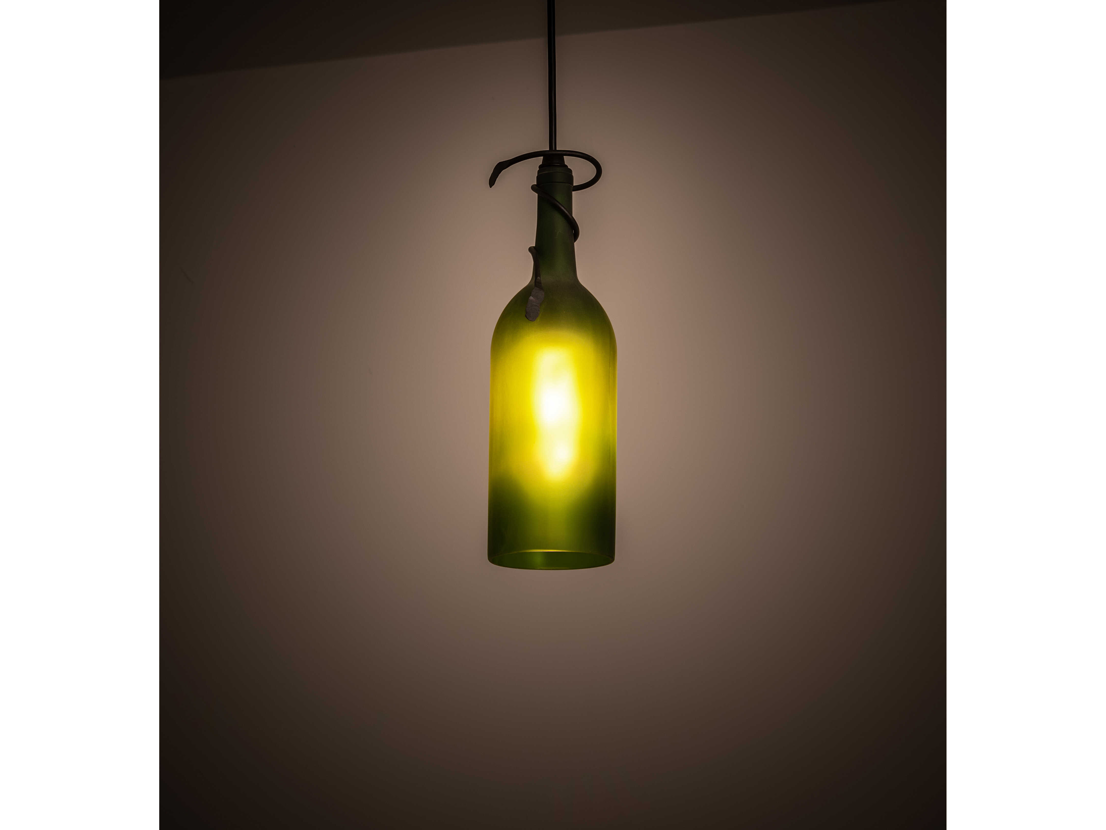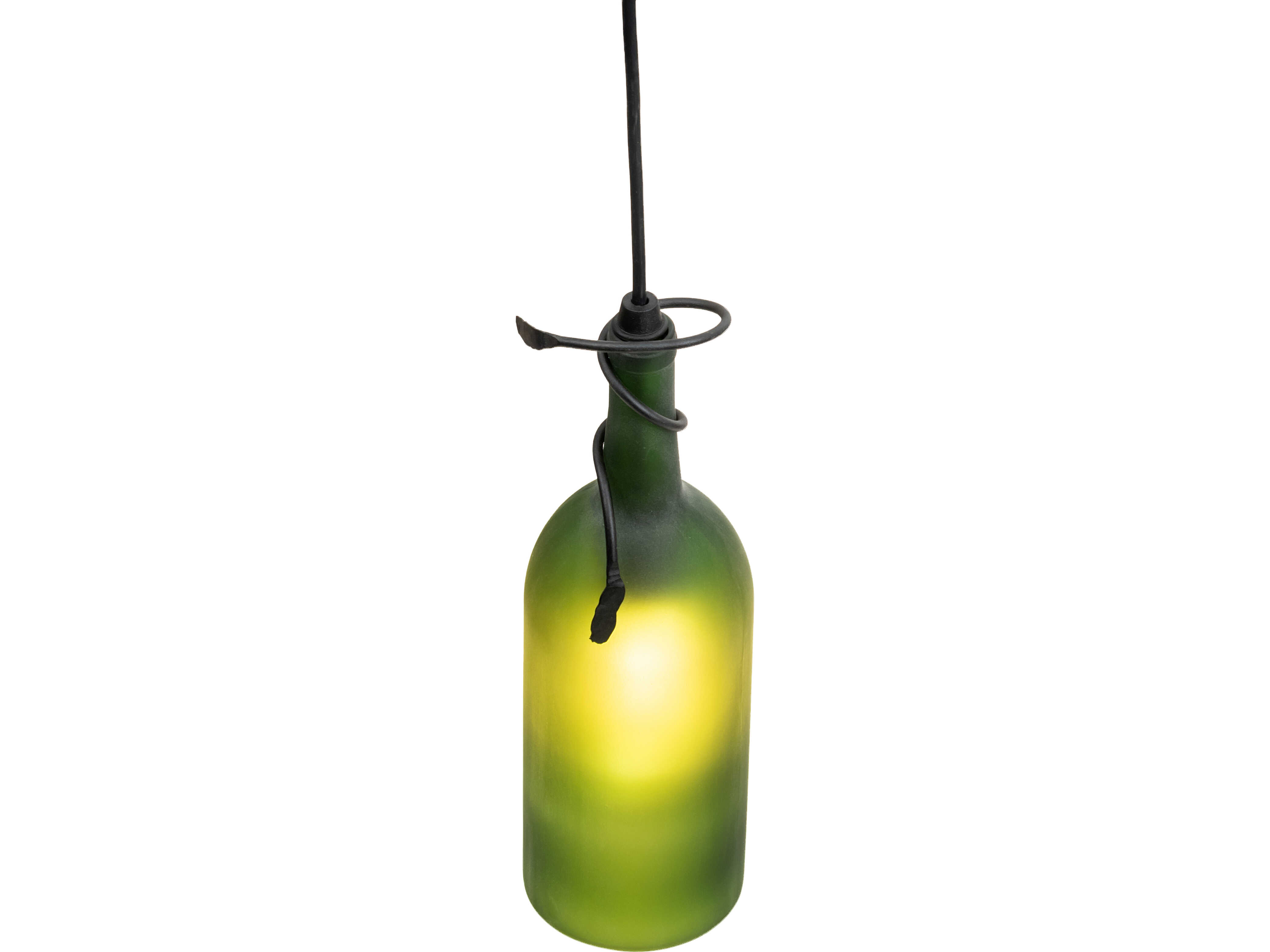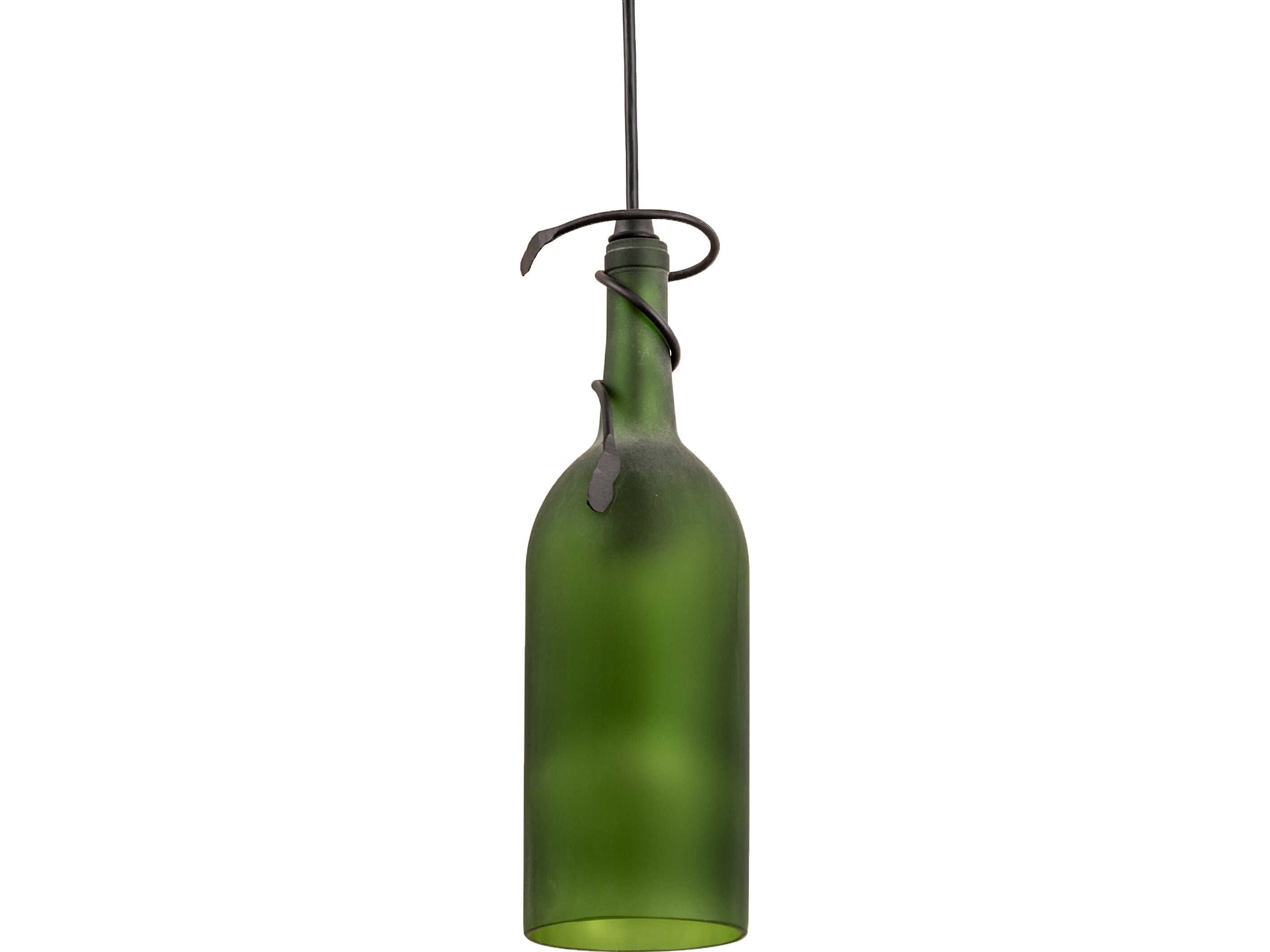 Capture the life of any party with authentic wine bottle lighting... so much fun that you may want to hang from this mini pendant; but don't. The fixture does so much more than deliver light; it adds personality and pizazz to any interior. It is perfect for placing in groups over bars and islands in homes; restaurants; hotels; pubs; nightclubs; and wineries. The Frosted Green Glass Wine Bottle is attached to sturdy hardware featured in a Textured Black finish. The overall height ranges from 15 to 130 inches; as the Black cord can be adjusted in the field to meet your exact lighting requirements. The Tuscan Vineyard Frosted Green Wine Bottle Mini Pendant is included in our American-made; American-designed; handcrafted Wine Bottle Lighting Collection and manufactured in Yorkville; New York. UL and cUL listed for dry and damp locations. Take your finest bottle of wine; and Meyda will transform it into an everlasting personalized fixture of light. Contact us for more information about custom wine bottle lighting fixtures and lamps. We can also create custom lighting with beer bottles; mason jars; milk bottles; and other glass containers and vessels.