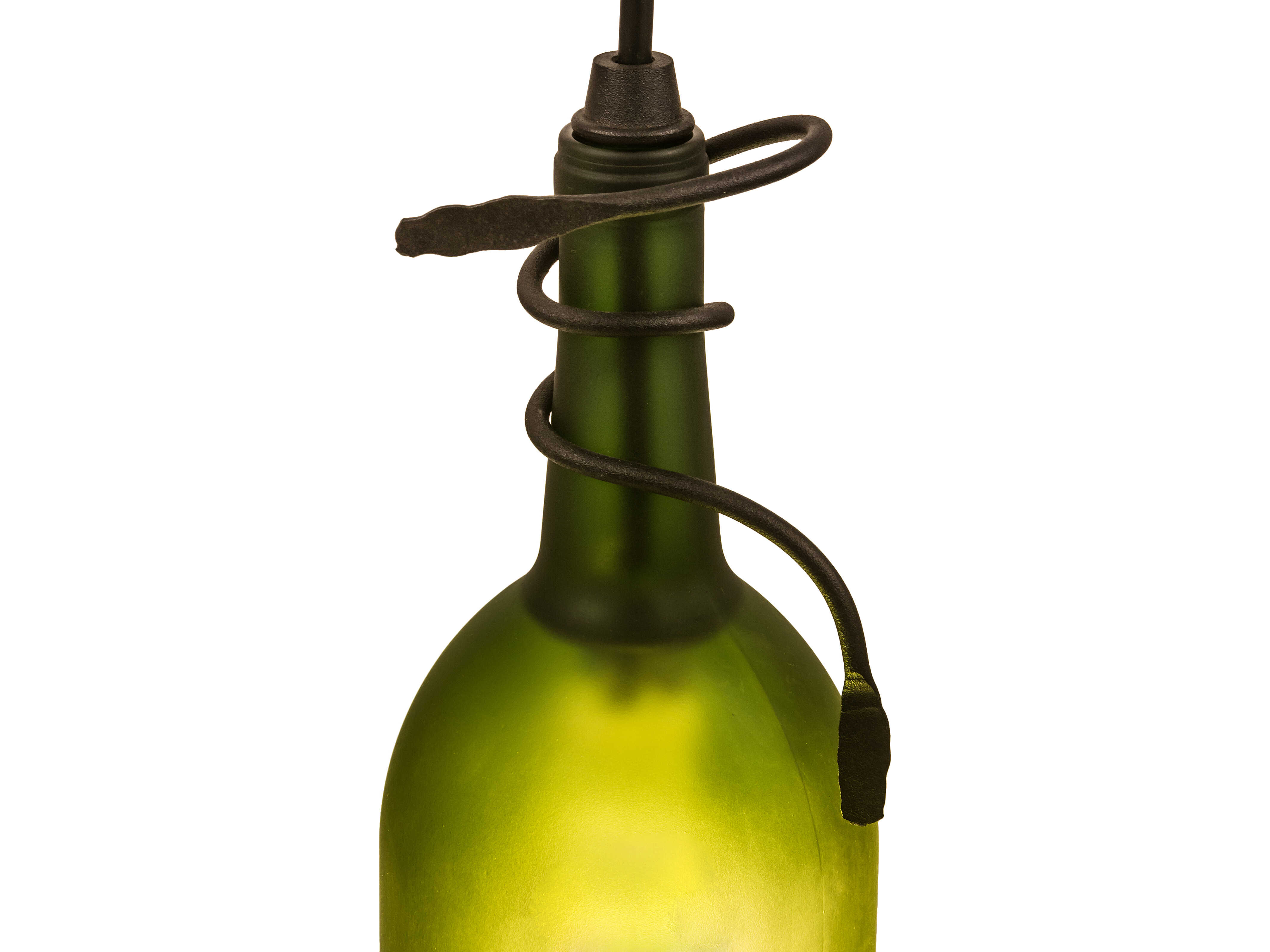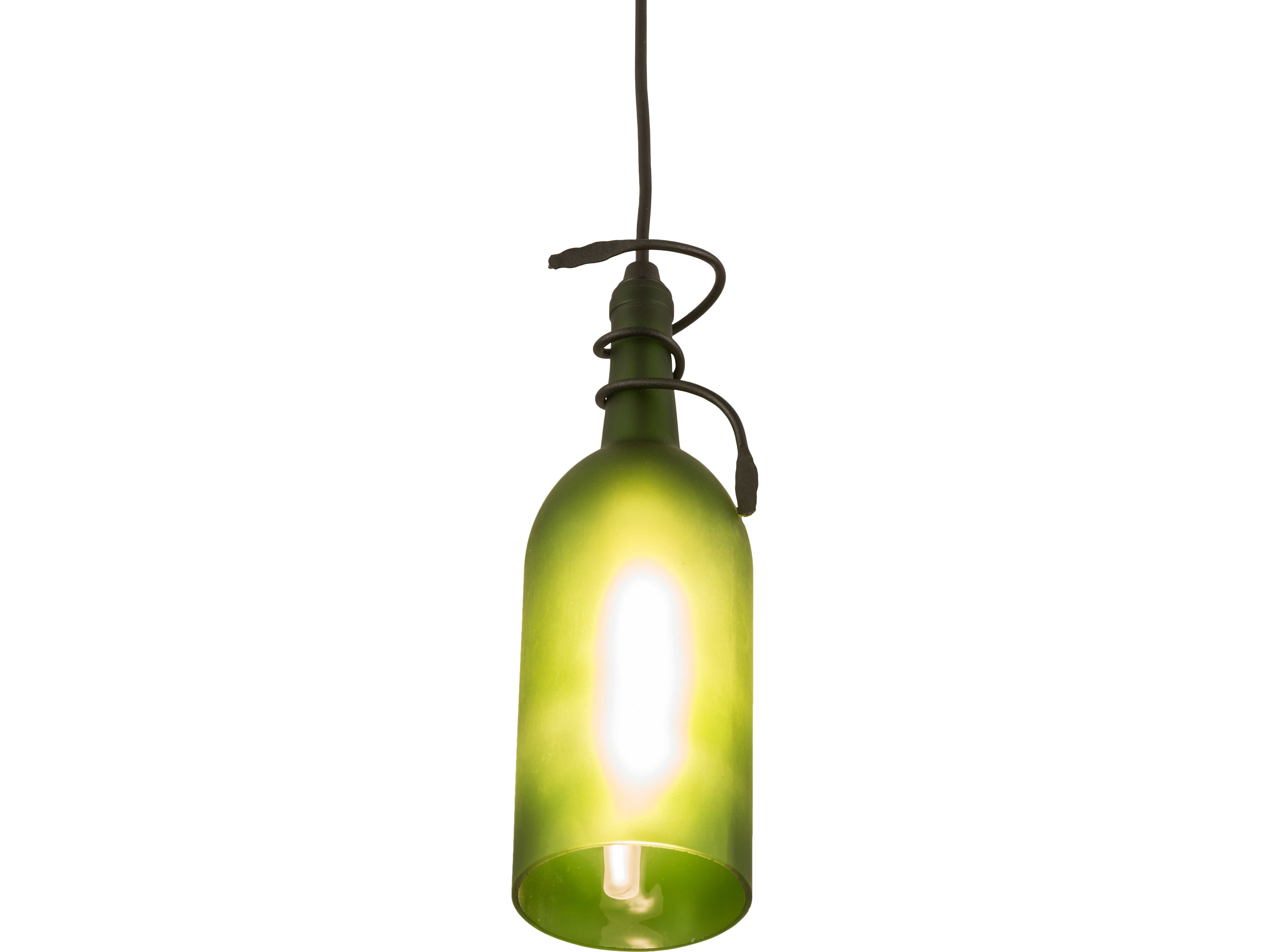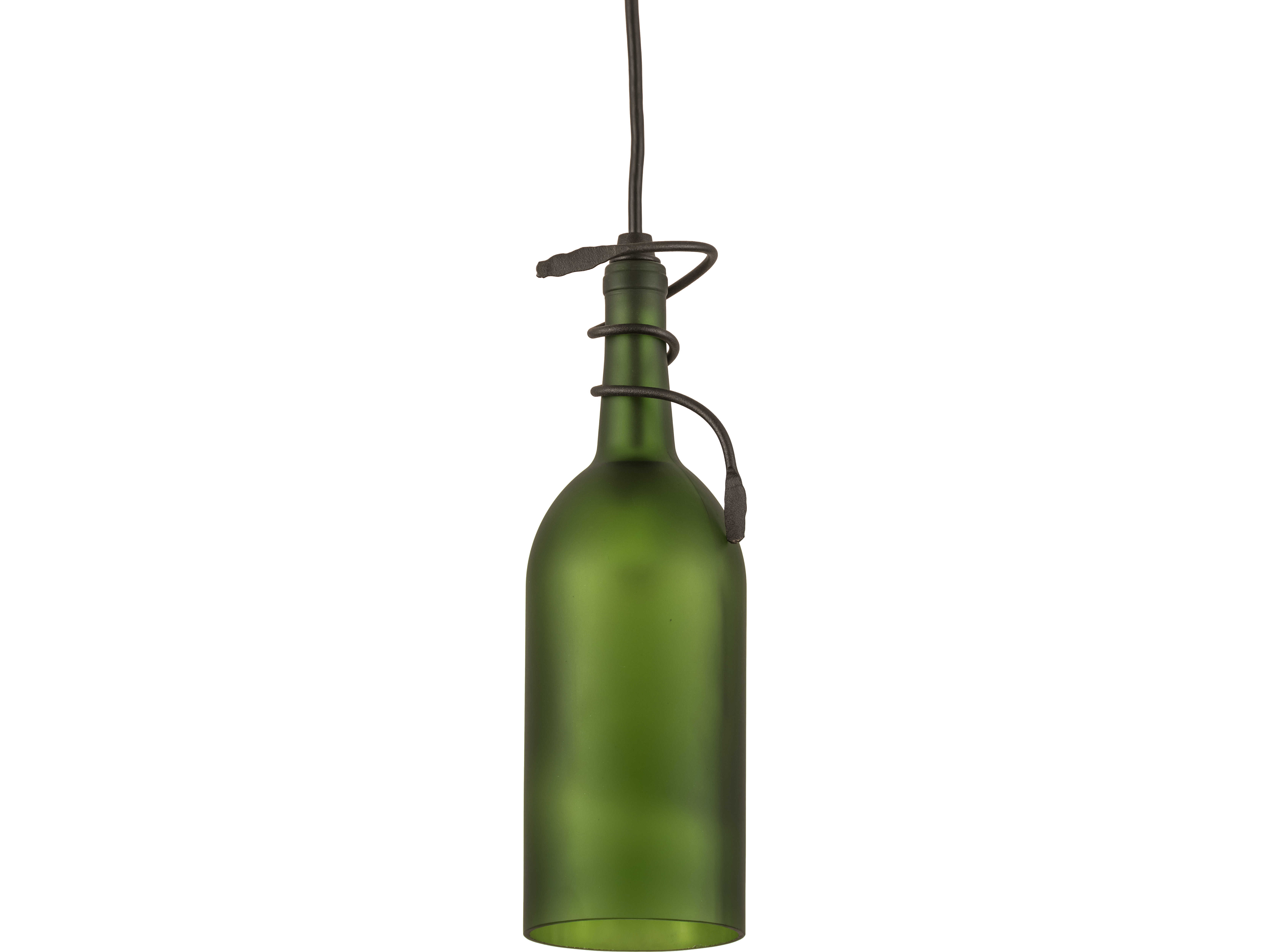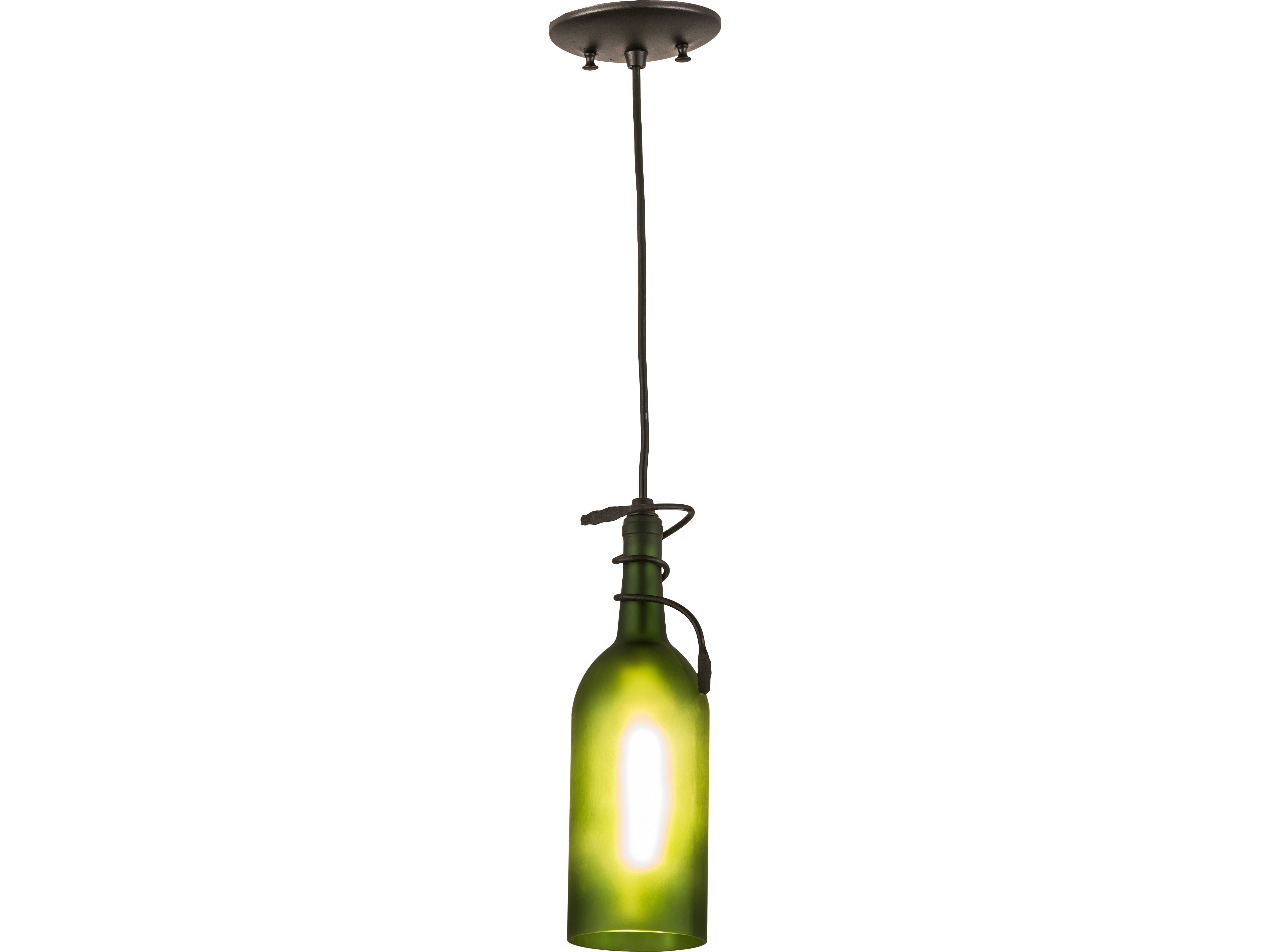 Connoisseurs will appreciate the detail and flavor of this Frosted Green Wine Bottle Pendant; which is embraced by delicate vine-like metal accents and a solid metal frame hand-finished in Textured Black. Liven up a restaurant; club; or home with a light fixture that does so much more than deliver light; it adds personality and pizzazz. Place the mini pendant individually or in multiples across a bar; island; or counter for a stunning design statement. The overall height ranges from 16 to 84 inches; as the cord can be adjusted in the field to meet your exact lighting requirements. This Tuscan Vineyard Frosted Green Wine Bottle Mini Pendant is included in our American-made; American-designed; handcrafted Wine Bottle Lighting Collection. The fixture is manufactured in Yorkville; New York. UL and cUL listed for dry and damp locations. Take your finest bottle of wine; and Meyda will transform it into an everlasting personalized fixture of light. Contact us for more information on custom wine bottle lighting fixtures and lamps. You can also create custom lighting with beer bottles; mason jars; milk bottles; and other glass containers and vessels by contacting us!