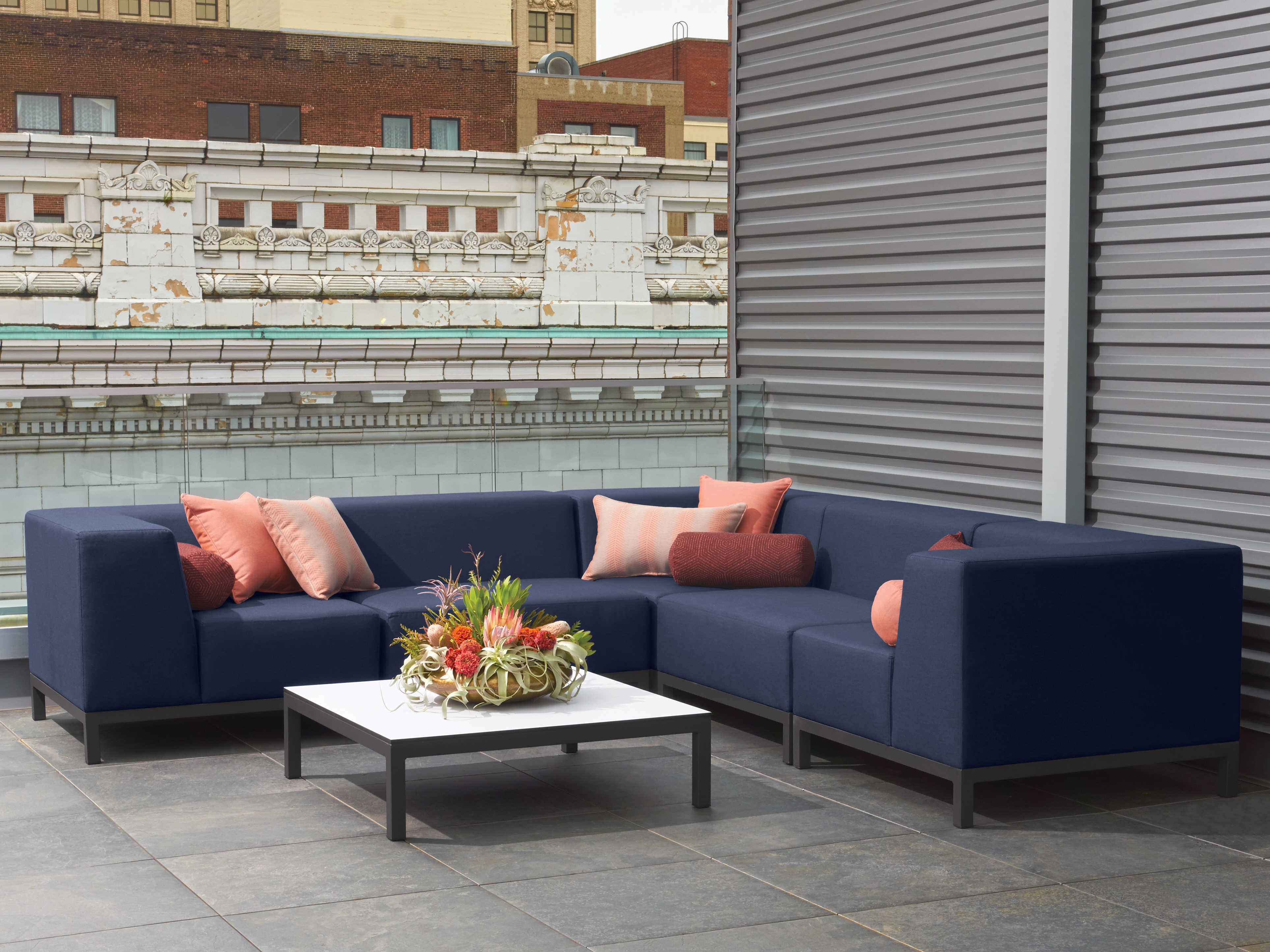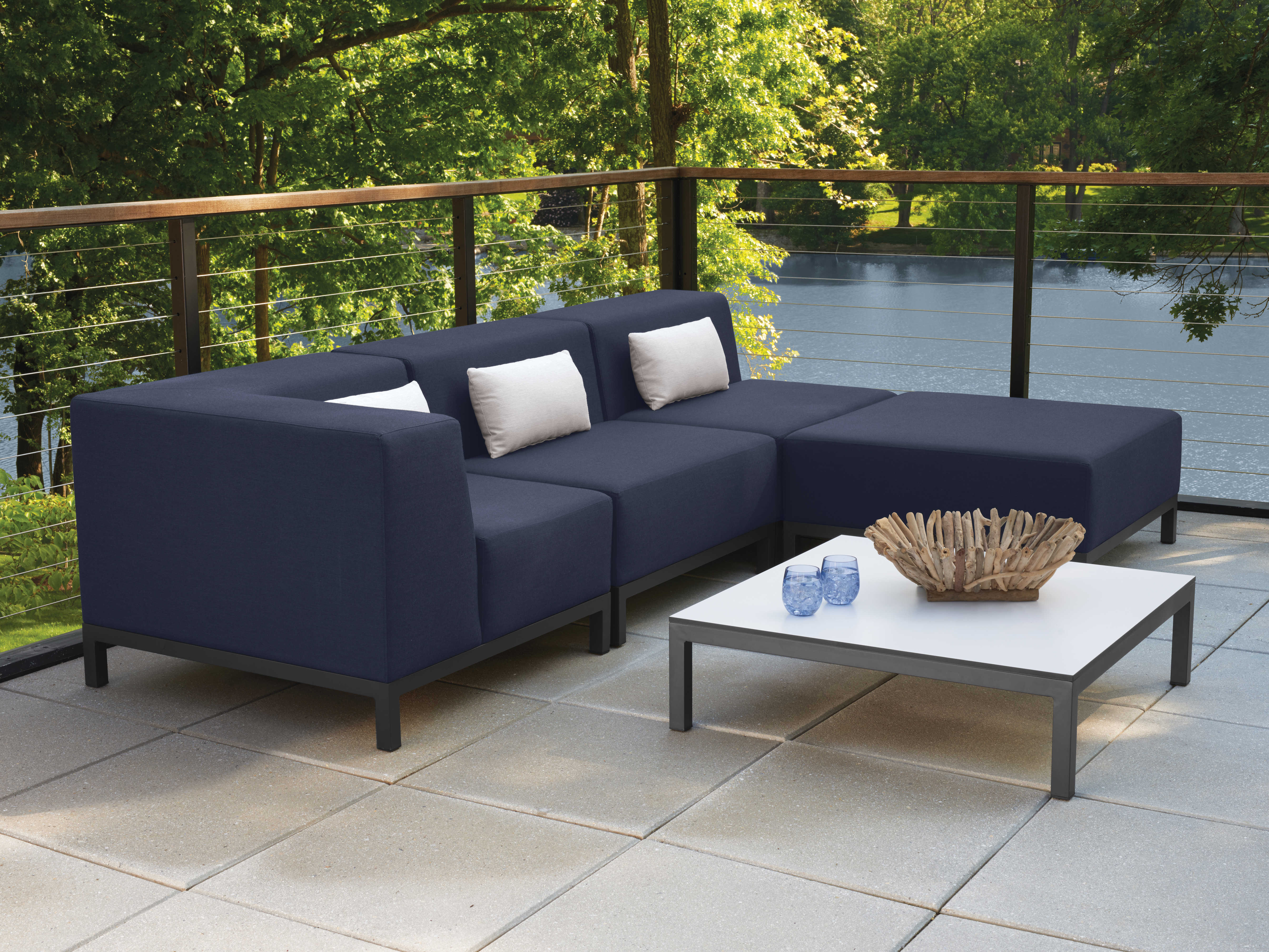 Koral combines crisp angles and tailored seating to create a sophisticated indoor/outdoor aesthetic. From conversation centers to relaxing retreats by the pool, this fully-upholstered modular collection can be configured and reconfigured for any outdoor space.