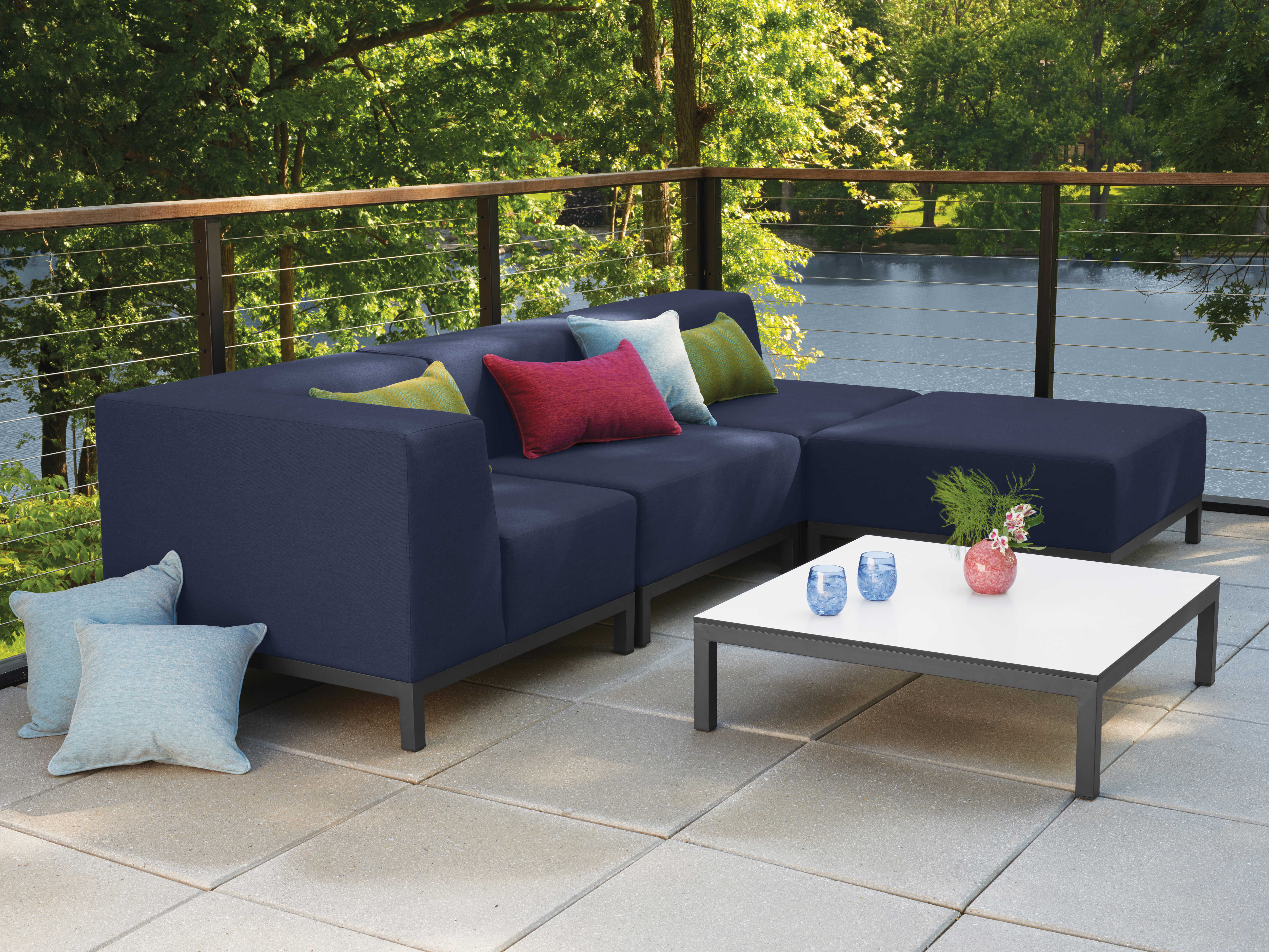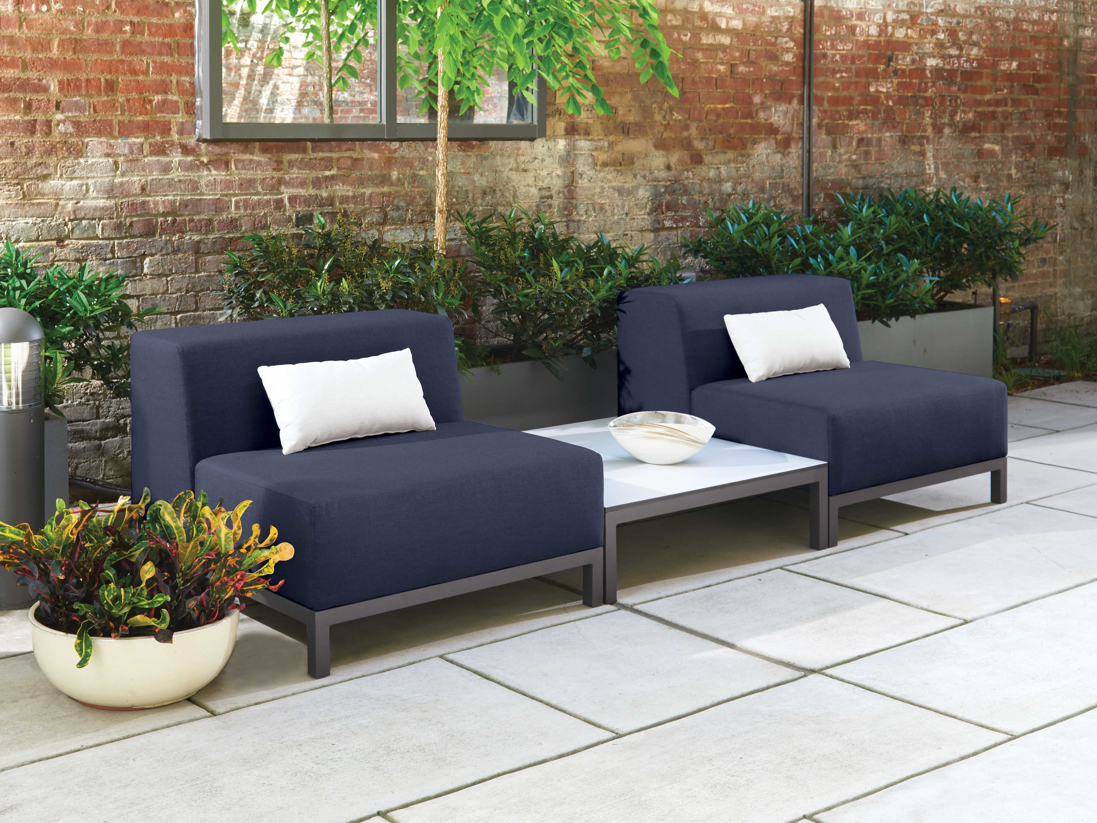 The Koral coffee table is the perfect compliment to the fully-upholstered modular lounge pieces in the collection. The table mimics the crisp angles of the seating, enhancing the sophisticated indoor/outdoor aesthetic. From conversation centers to relaxing retreats by the pool, configure and reconfigure the collection pieces to adapt to any outdoor space.
