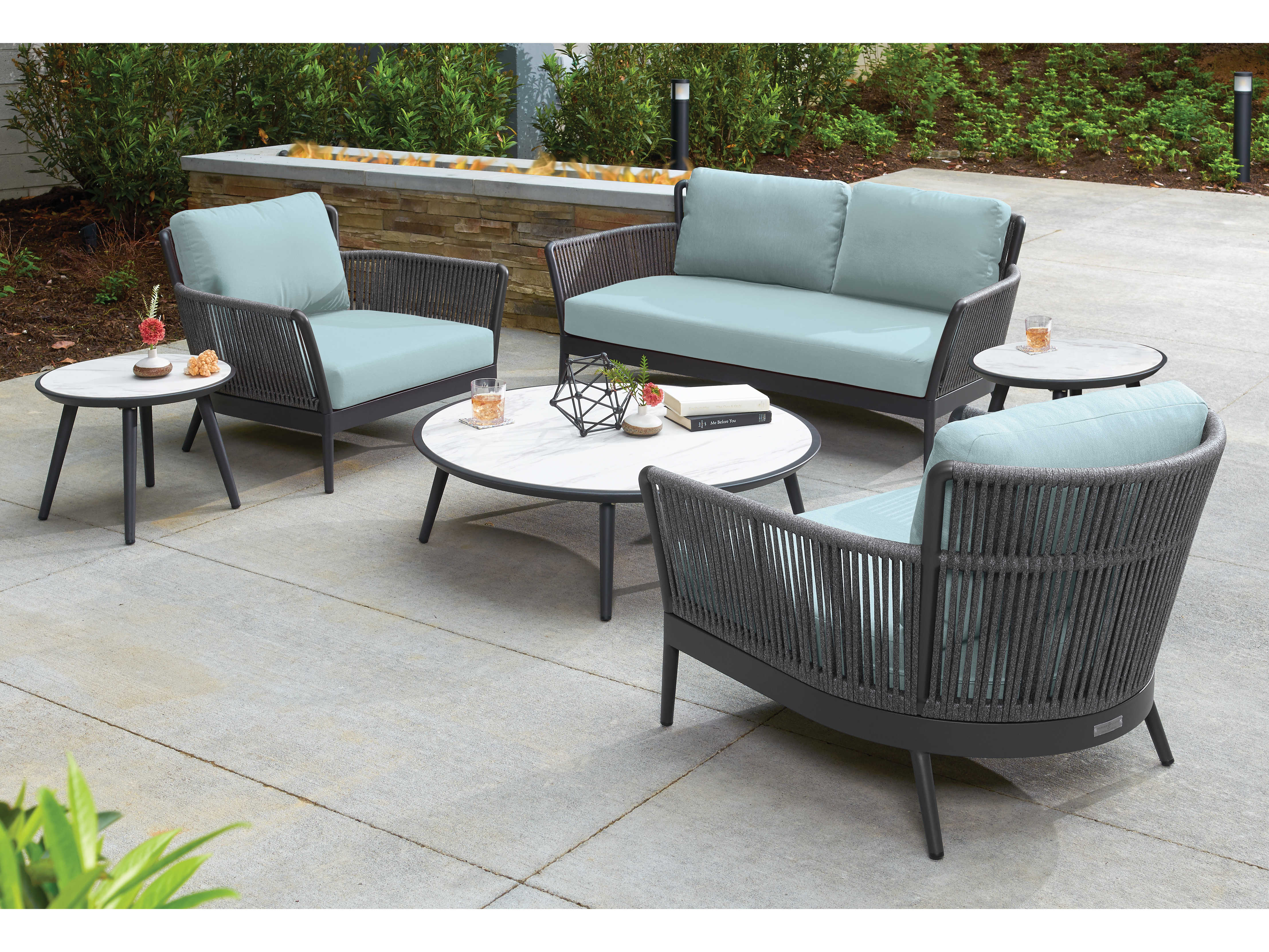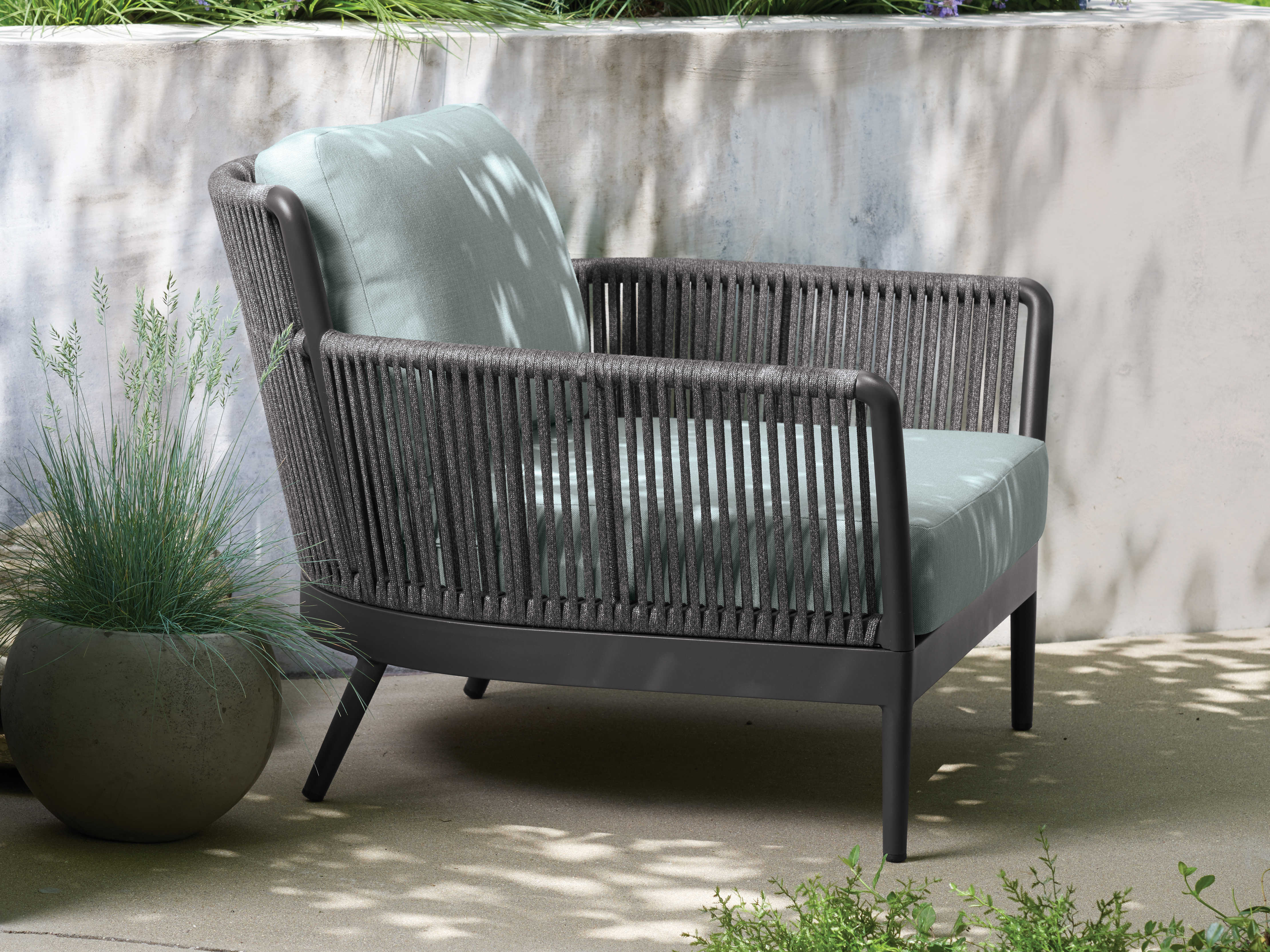 Available in a Club Chair, Loveseat and Sofa, Nette Deep Seating elegantly combines materials to produce an airy modern aesthetic that is as refined as it is striking. Gentle curvilinear frames and stylish dual-layer woven straps create a design that is both modern and durable. Quick-drying cushions provide both comfort and support (optional lumbar pillows are sold separately). It is easy to clean and maintain and is designed to create luxurious outdoor living experiences that stand the test of time. Pair with Eiland dining tables and Nette lounge seating and tables.