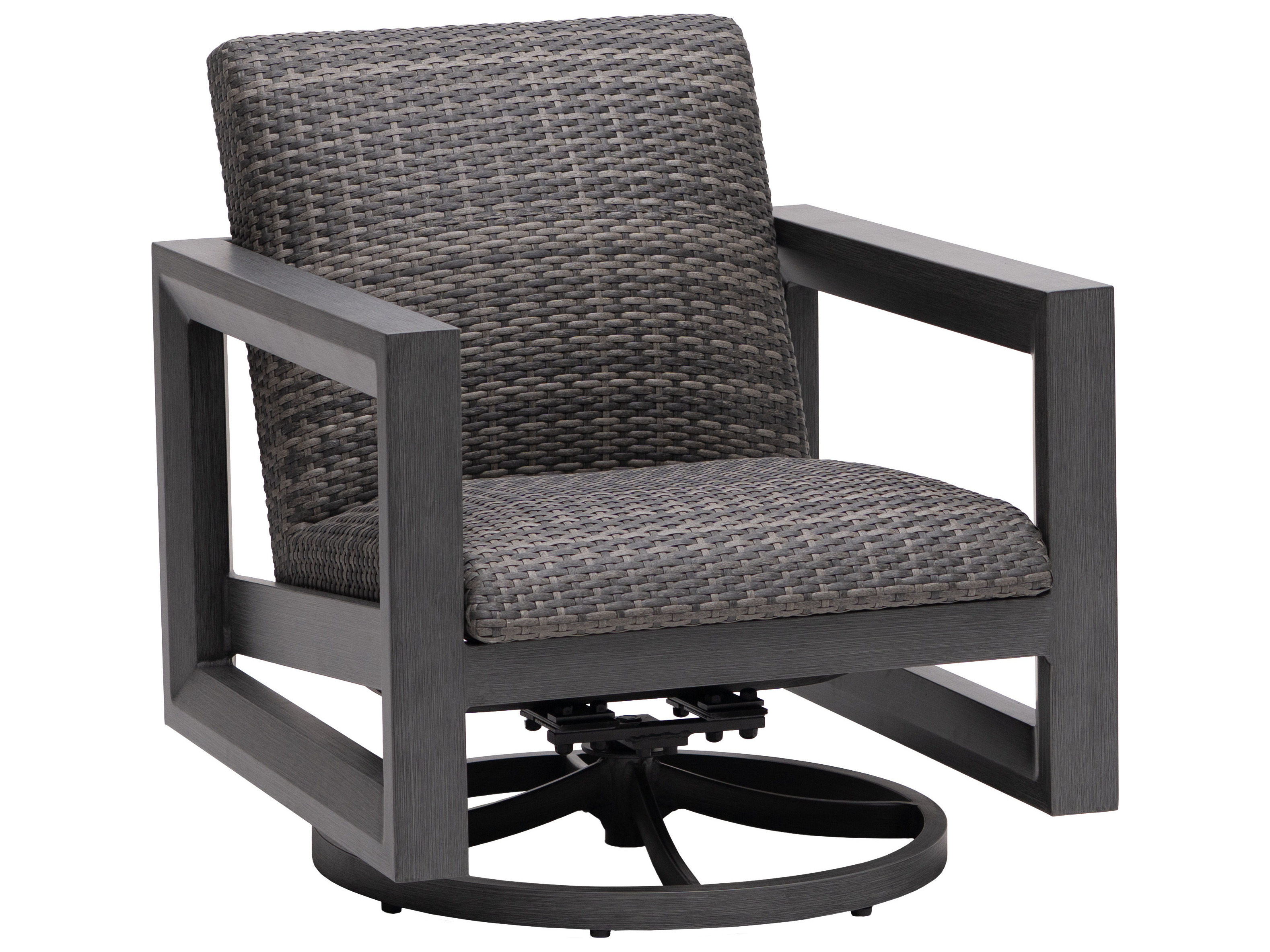 - Smooth 360 degree swivel rocking motion. 100% Powder Coated Aluminum Frame will not rust.