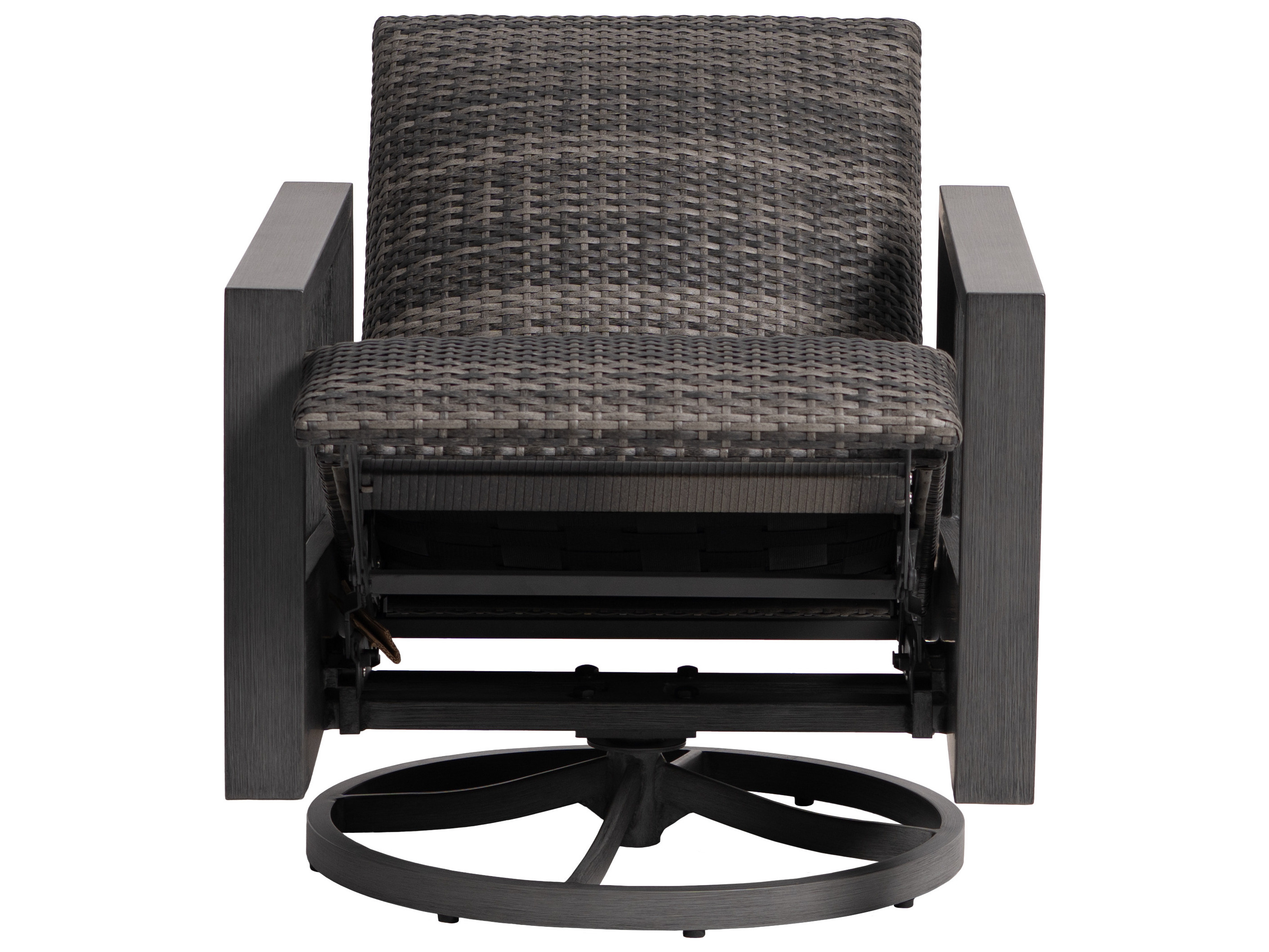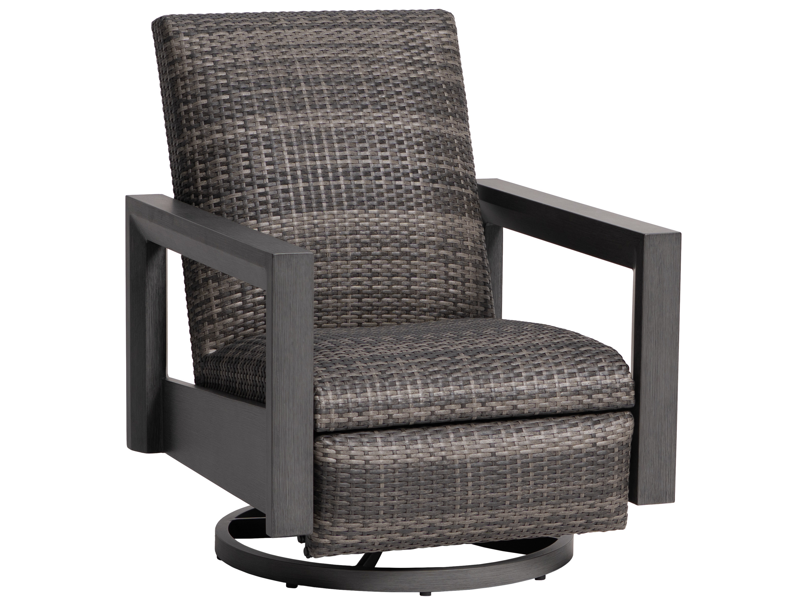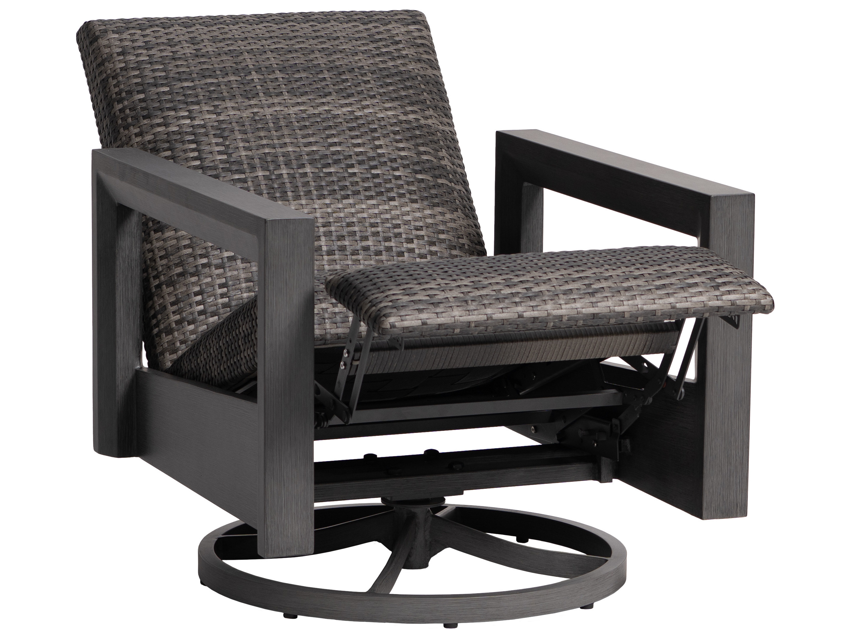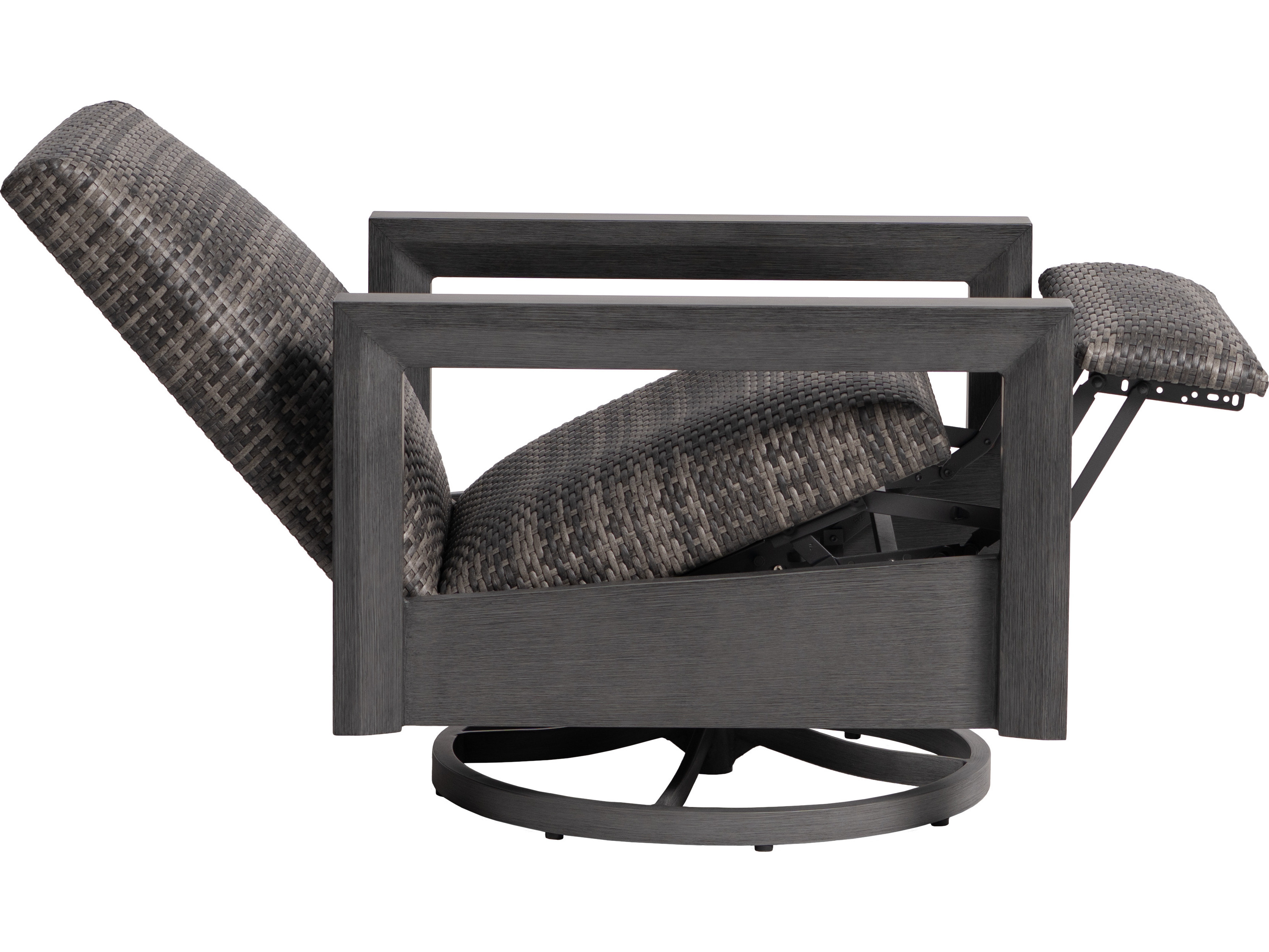- Smooth 360 degree swivel reclining motion. 100% Powder Coated Aluminum Frame will not rust. Sit back then lean back and relax in complete comfort in this swivel recliner.