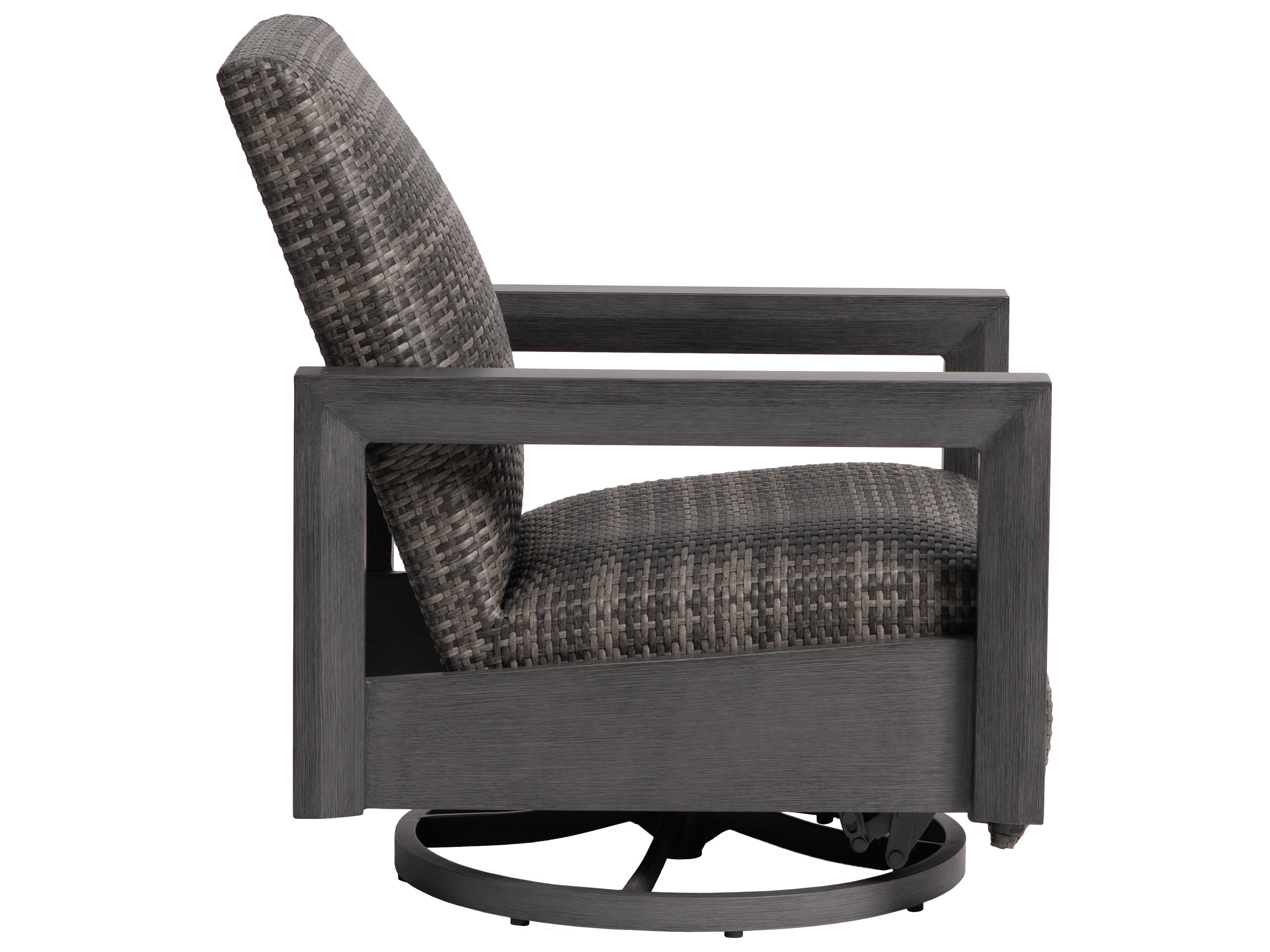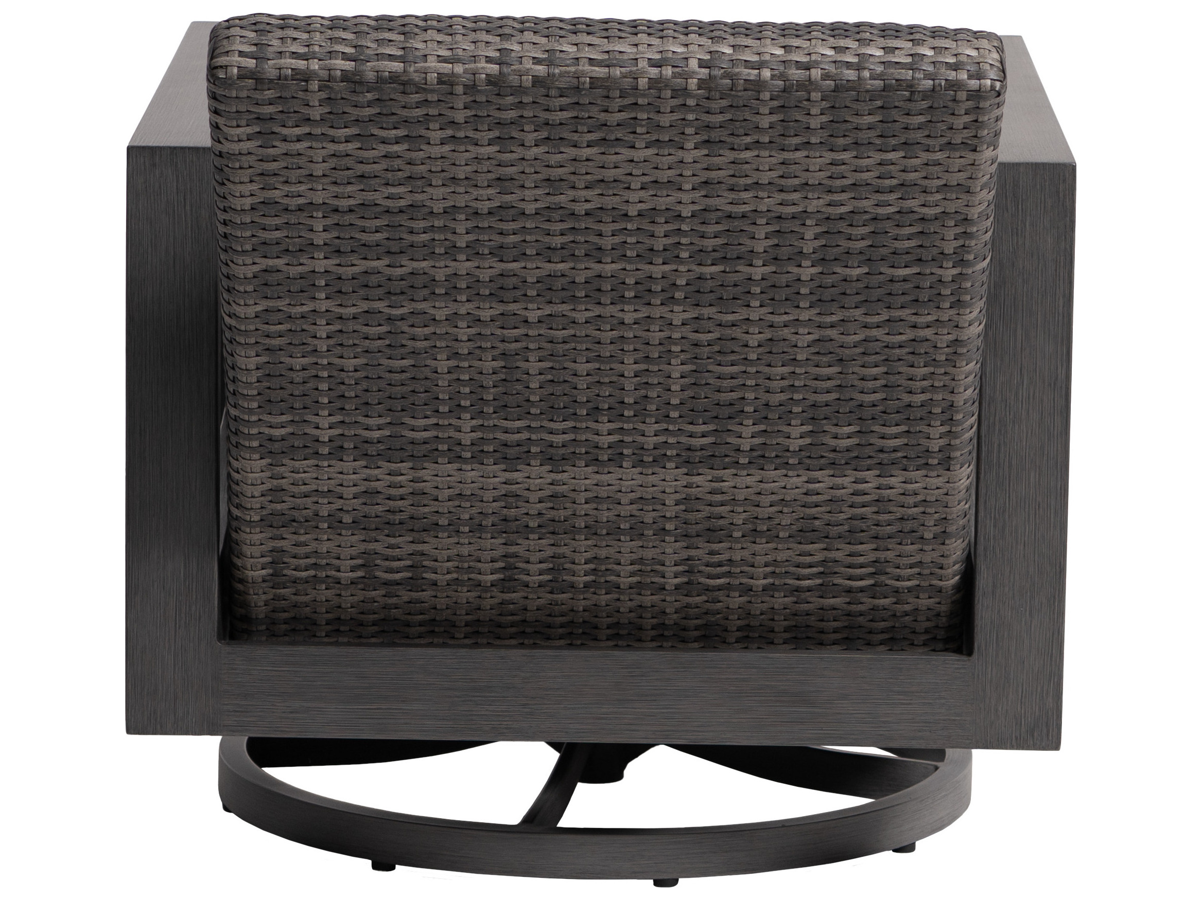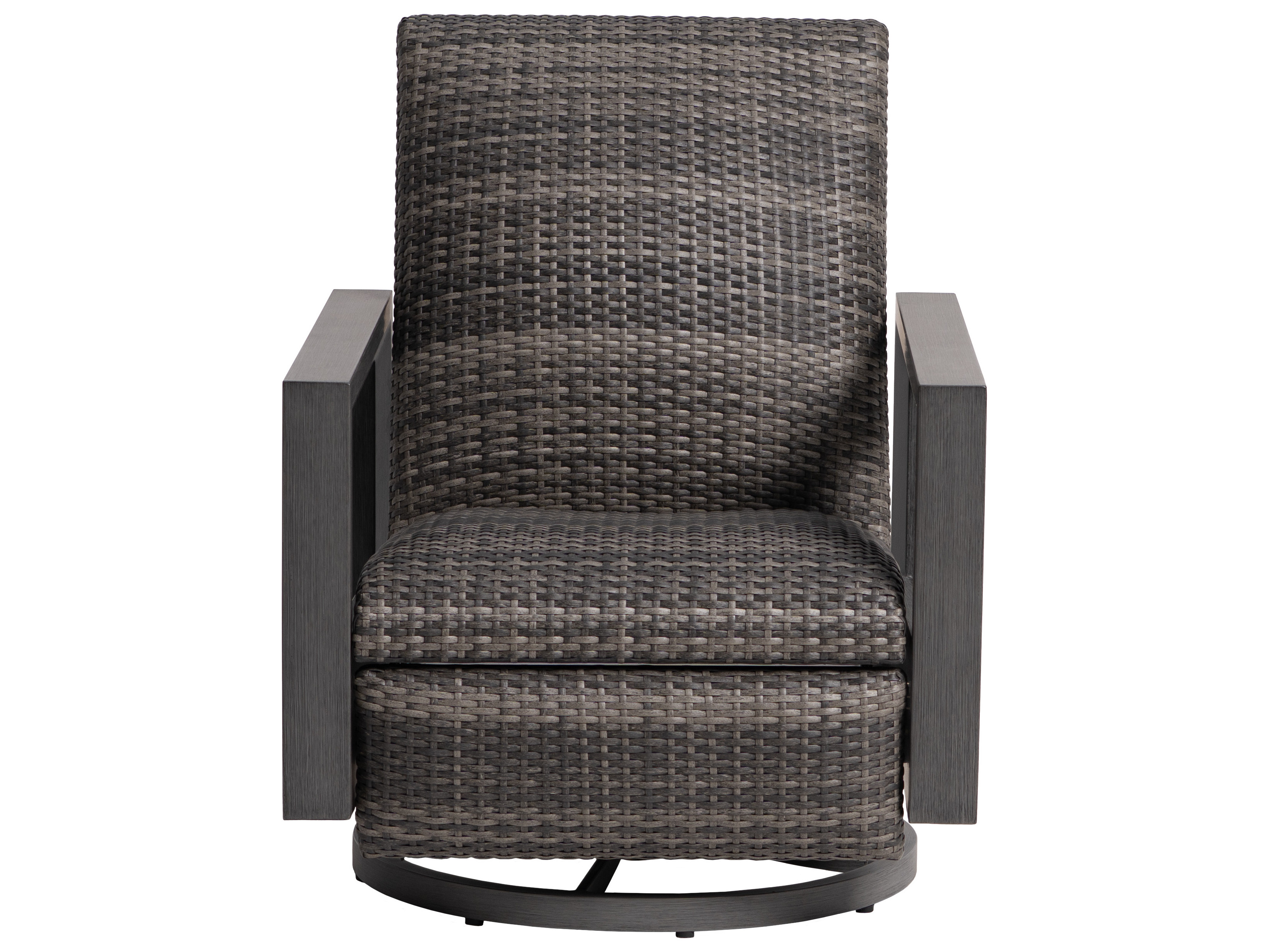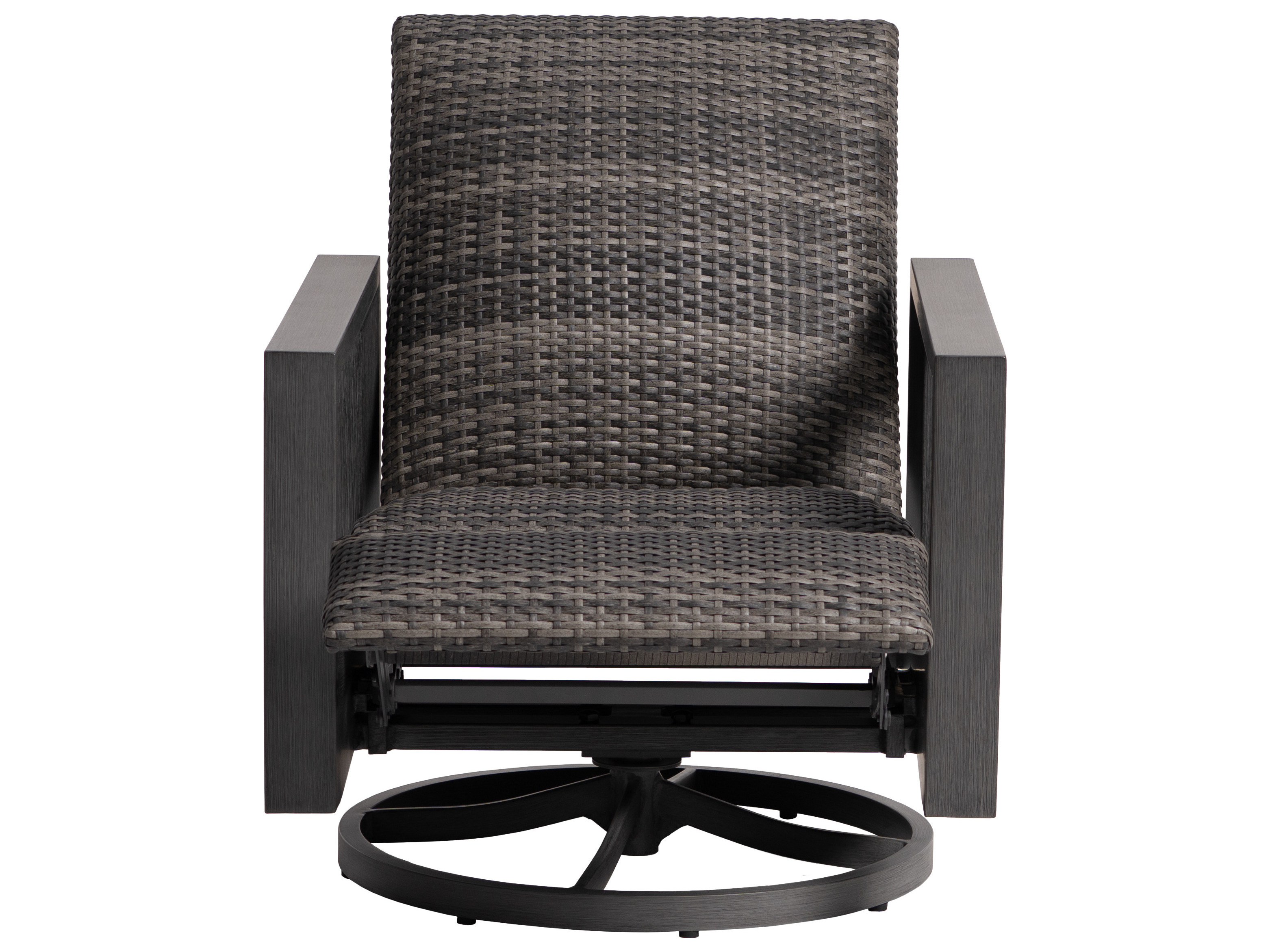 - Smooth 360 degree swivel reclining motion. 100% Powder Coated Aluminum Frame will not rust. Sit back then lean back and relax in complete comfort in this swivel recliner.