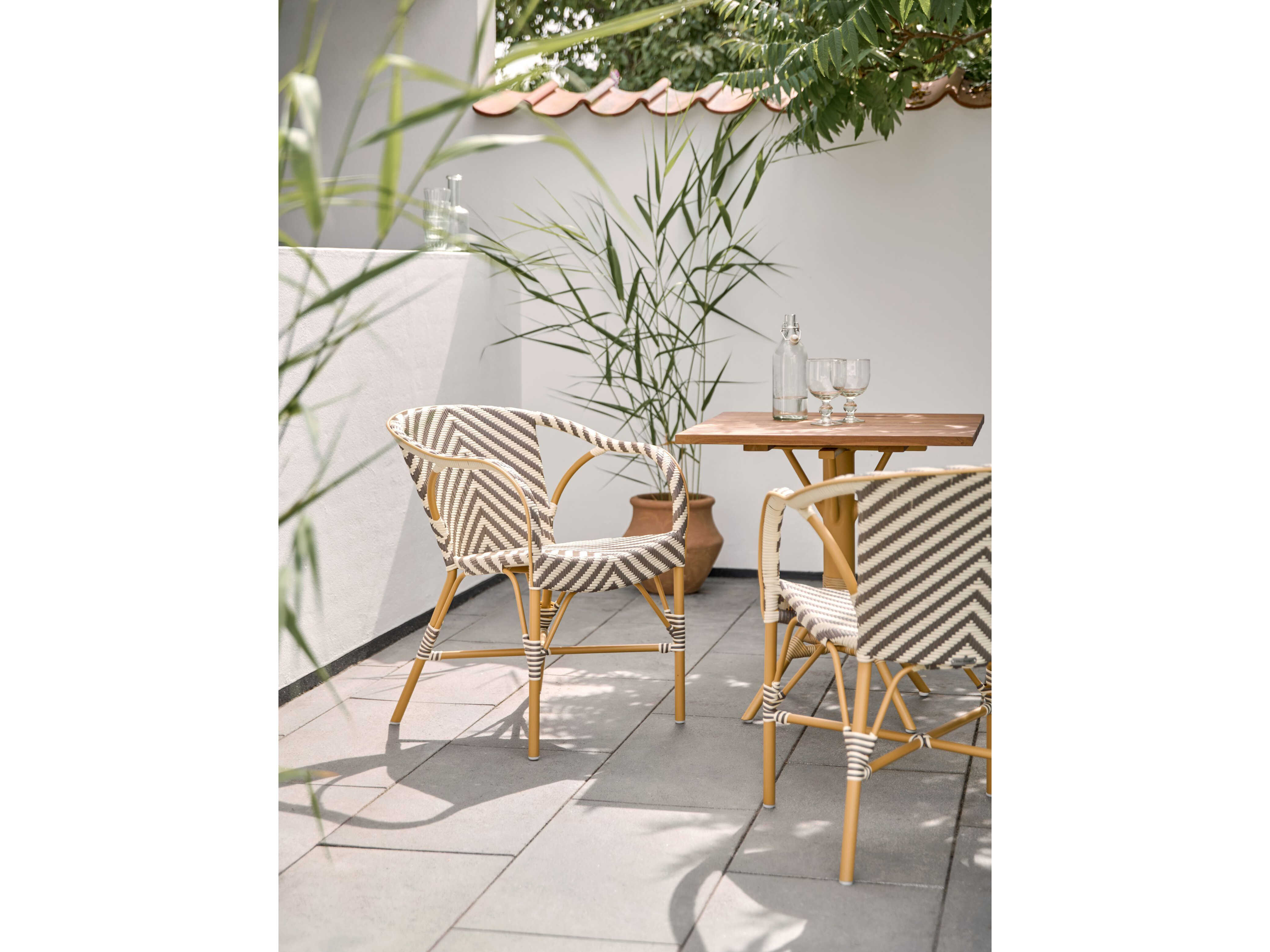 The Madeleine Outdoor Armchair by Sika Design showcases an elegant style that evokes Paris in the Jazz Age. Featuring a barrel back with gently curved arms and a wide, generous seat, the chair is handwoven using weather-resistant ArtFibre polyethylene wicker strands. A contrasting pattern on the seat and a fully woven waterfall front call for lasting great looks and comfort. An AluRattan lightweight aluminum frame with a powder-coated weather-proof finish takes the place of real cane for durable year-round outdoor use. The Madeleine is ideal for dining on the patio at home and a favored choice for alfresco dining at restaurants. The Madeleine Outdoor Armchair by Sika Design showcases an elegant style that evokes Paris in the Jazz Age. Featuring a barrel back with gently curved arms and a wide, generous seat, the chair is handwoven using weather-resistant ArtFibre polyethylene wicker strands. A contrasting pattern on the seat and a fully woven waterfall front call for lasting great looks and comfort. An AluRattan lightweight aluminum frame with a powder-coated weather-proof finish takes the place of real cane for durable year-round outdoor use. The Madeleine is ideal for dining on the patio at home and a favored choice for alfresco dining at restaurants.