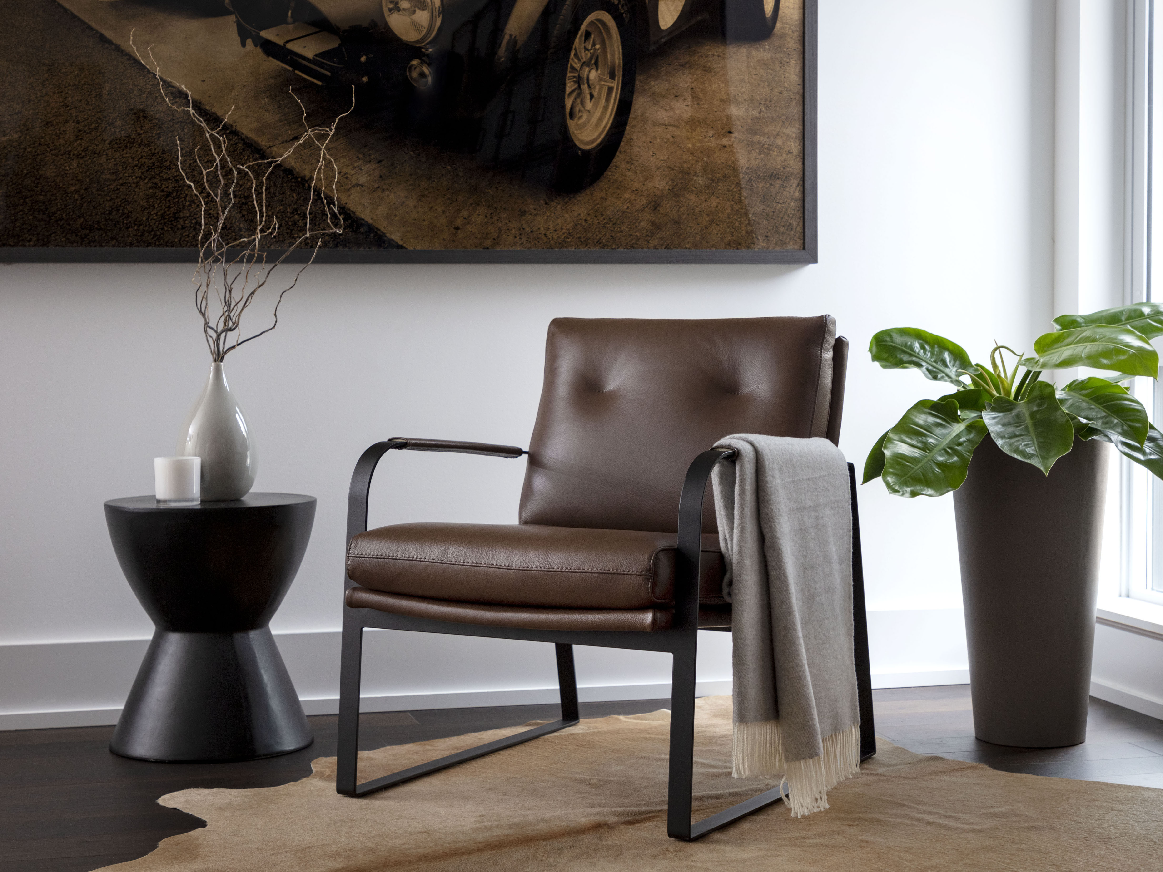 A sculptural round end table designed for contemporary and urban spaces. Made of concrete with each finished differently for an industrial look.