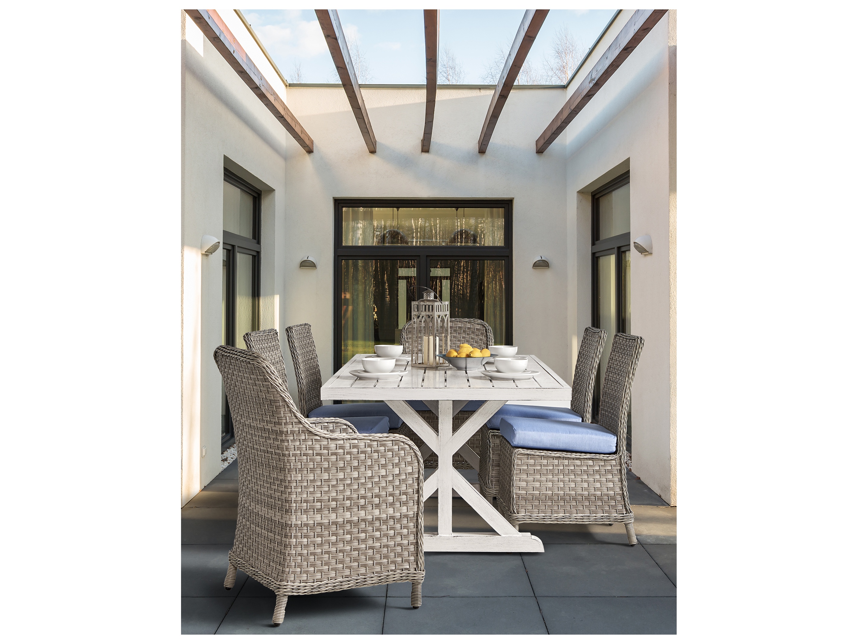 New Java's uniquely textured sandstone finish and durable construction are ideal for outdoor living in style. Wide, flat wicker and squared shaping embody contemporary chic - yet also call to mind the timeless appeal of woven wicker comfort. New Java is a complete patio collection, offering a full range of seating and sectional pieces to suit any configuration.