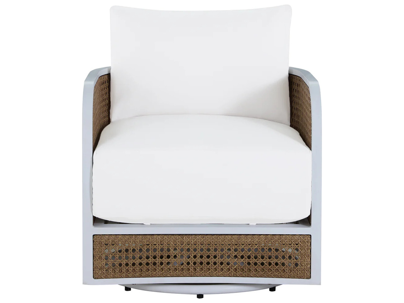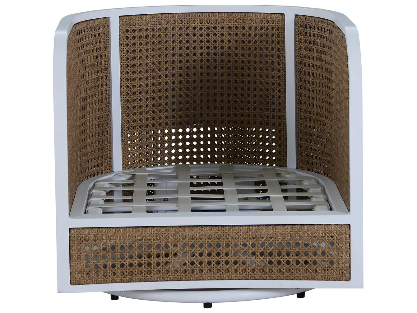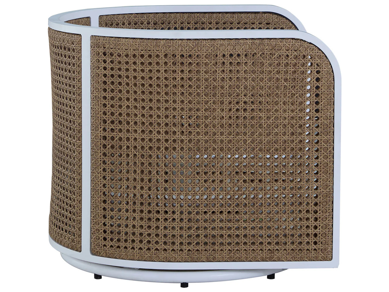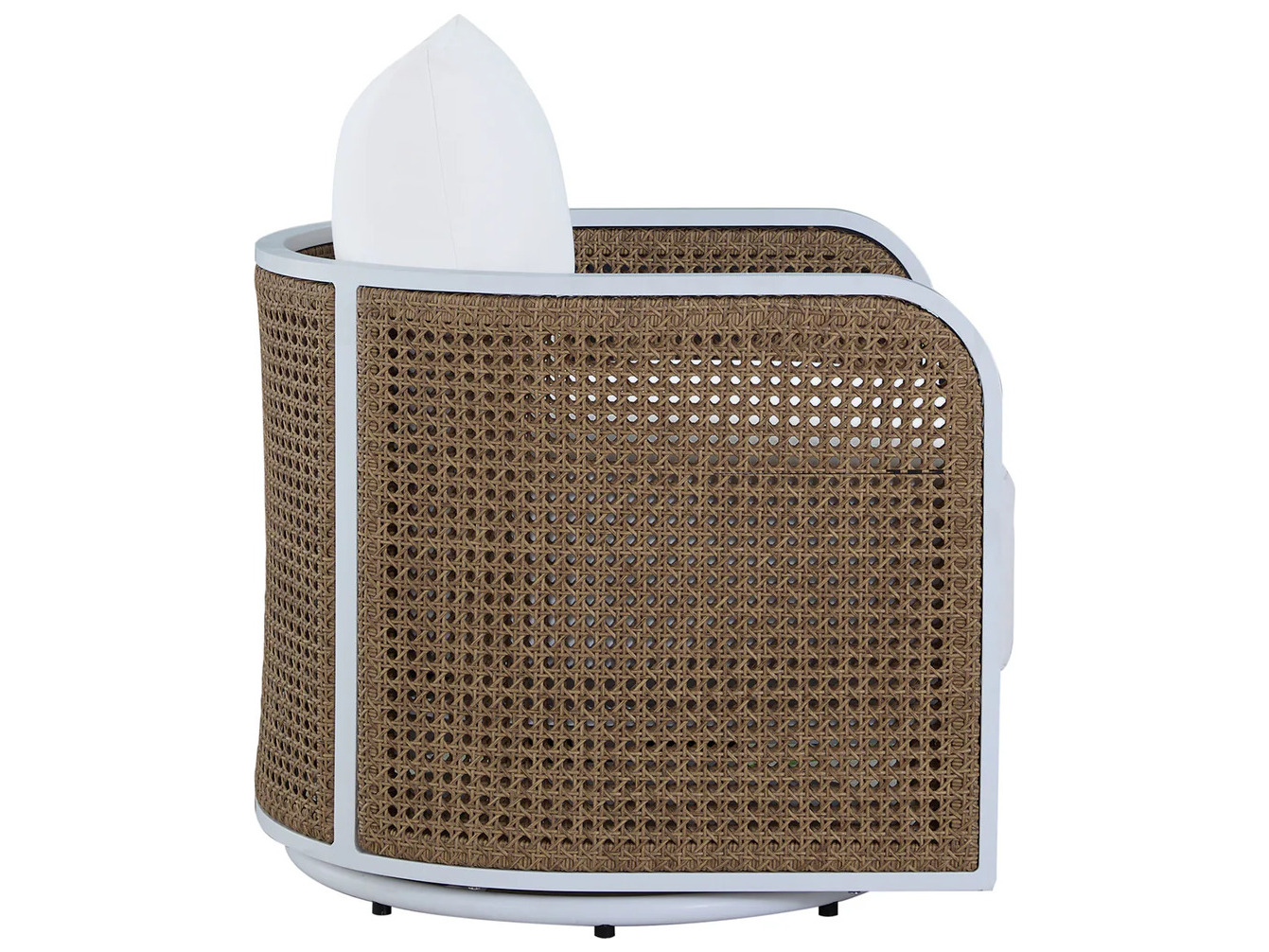 The Havana Swivel Lounge brings motion and comfort to the collection’s signature blend of nostalgic charm and modern craftsmanship. Featuring handwoven, all-weather N-Dura™ resin wicker in a classic open cane pattern, it pays tribute to traditional Cuban design while offering exceptional outdoor durability. Set within a sleek, powder-coated aluminum frame with gently rounded corners and mid-century modern cues, this lounge chair rotates smoothly 360 degrees—perfect for relaxed entertaining and conversation. With its plush cushions and rich texture, the Havana Swivel Lounge delivers timeless style with contemporary comfort for any outdoor retreat.