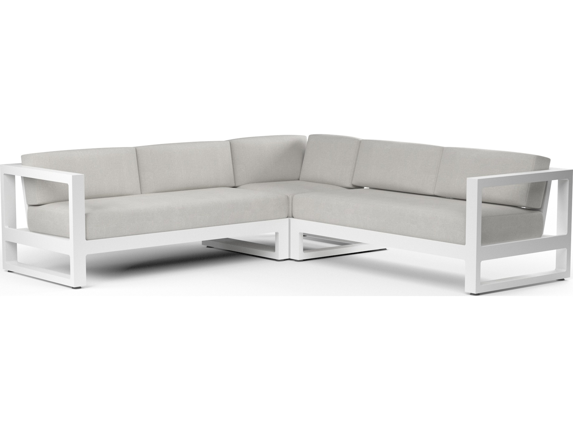 - The Newport Sectional blends modern and industrial sensibility into one striking design. Informed by midcentury design elements, the Newport features a low back and smart, linear frame. Sectional includes 1 Left Arm Loveseat, 1 Right Arm Loveseat, and 1 Corner unit crafted in powder coated aluminum in a Satin White finish. Modular possibilities are endless with addition of our Newport Armless Club Chair.