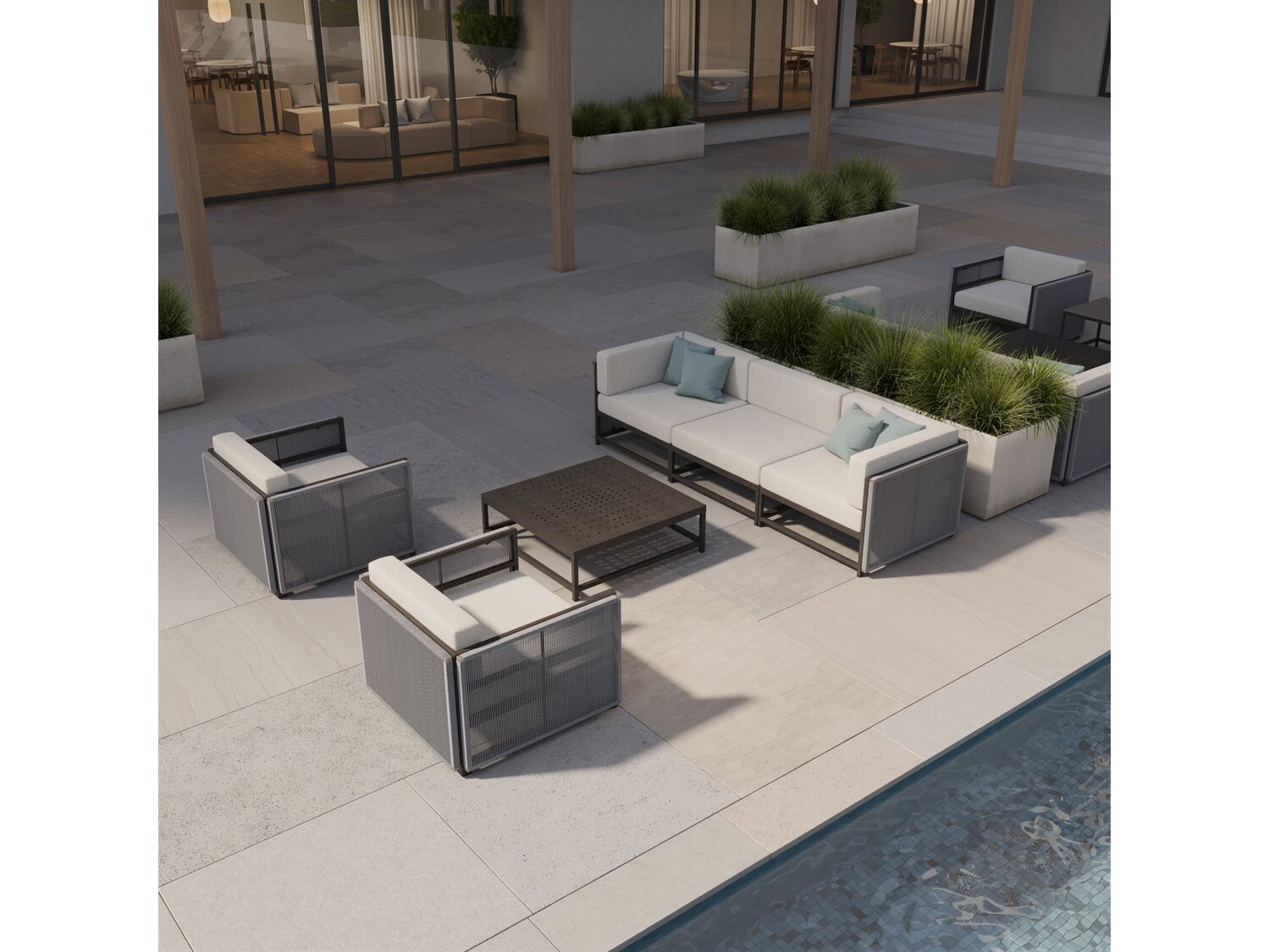 The Cabana Club Cushion Rope Modular pieces offer versatile solutions, allowing you to mix and match modular units to create various seating configurations to suit any space. With a sleek and contemporary style, the Cabana Club Cushion Rope Square Corner Module features a sturdy linear aluminum frame, enhanced with decorative rope paneling for a unique look. These rope panels are designed for both commercial and residential settings, providing durability and weather resistance without compromising style.
