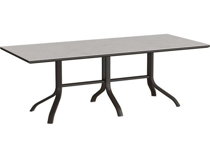 Tropitone Horizon Solid Aluminum 85" x 36" Rectangular KD Pedestal Dining Table with Umbrella Hole