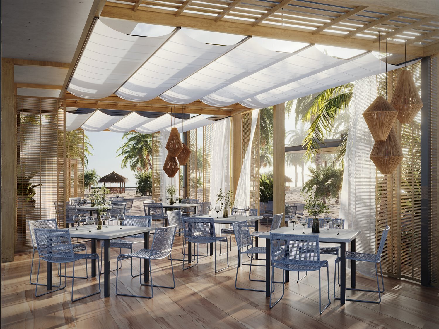 The Bayfront Rope Armless Side Chair brings modern coastal-inspired style to any dining or seating application. Featuring a multi-dimensional rope design, the armless silhouette features a gently curved back and generously proportioned seat for pure comfort and support. The UV resistant polypropylene rope and powder coated aluminum frame are built to endure high traffic resort settings and the outdoor elements year round. Choose to add an optional seat pad.